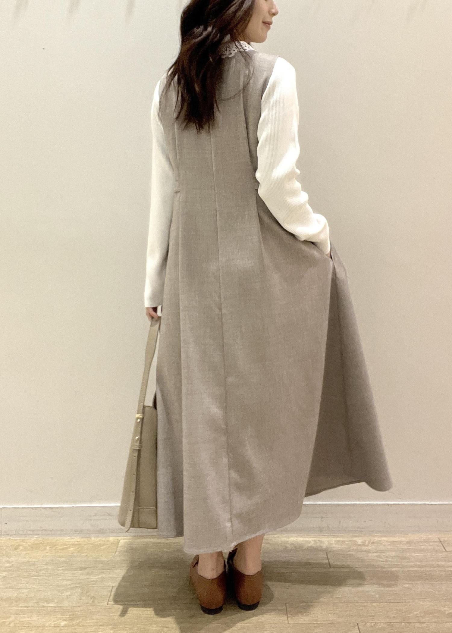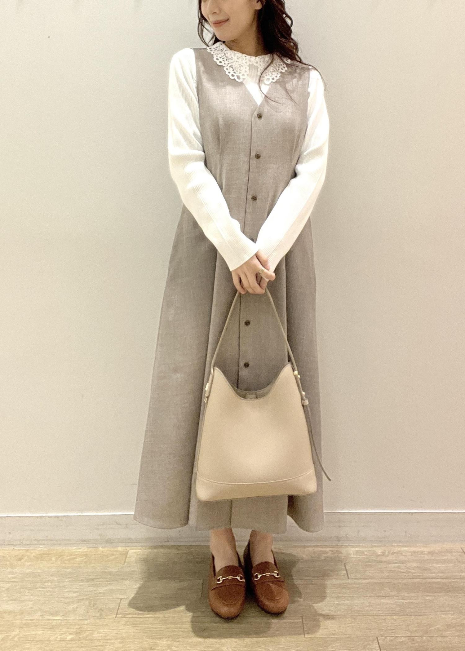 ジャンパースカートにレーストップスを合わせて、さりげなく華やかさをプラス♩