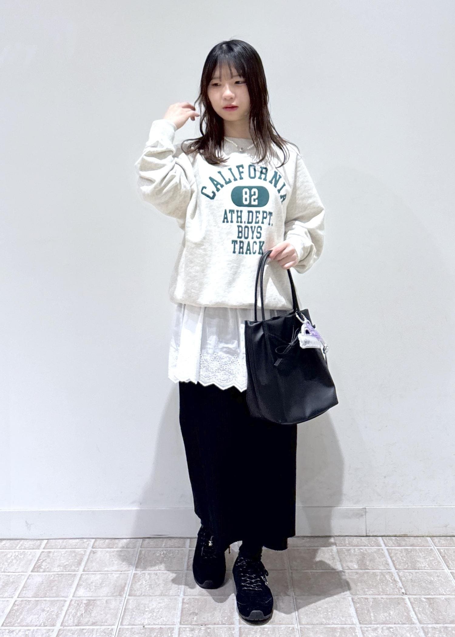身体のラインを拾いすぎず、すっきり見えするのでワイドのボトムスとの相性良くお召しいただけます。 -
