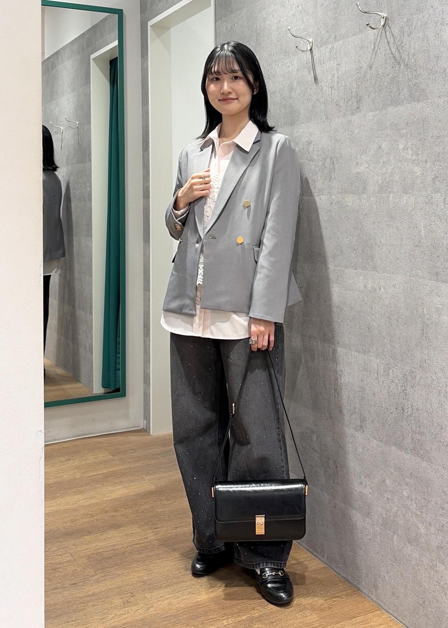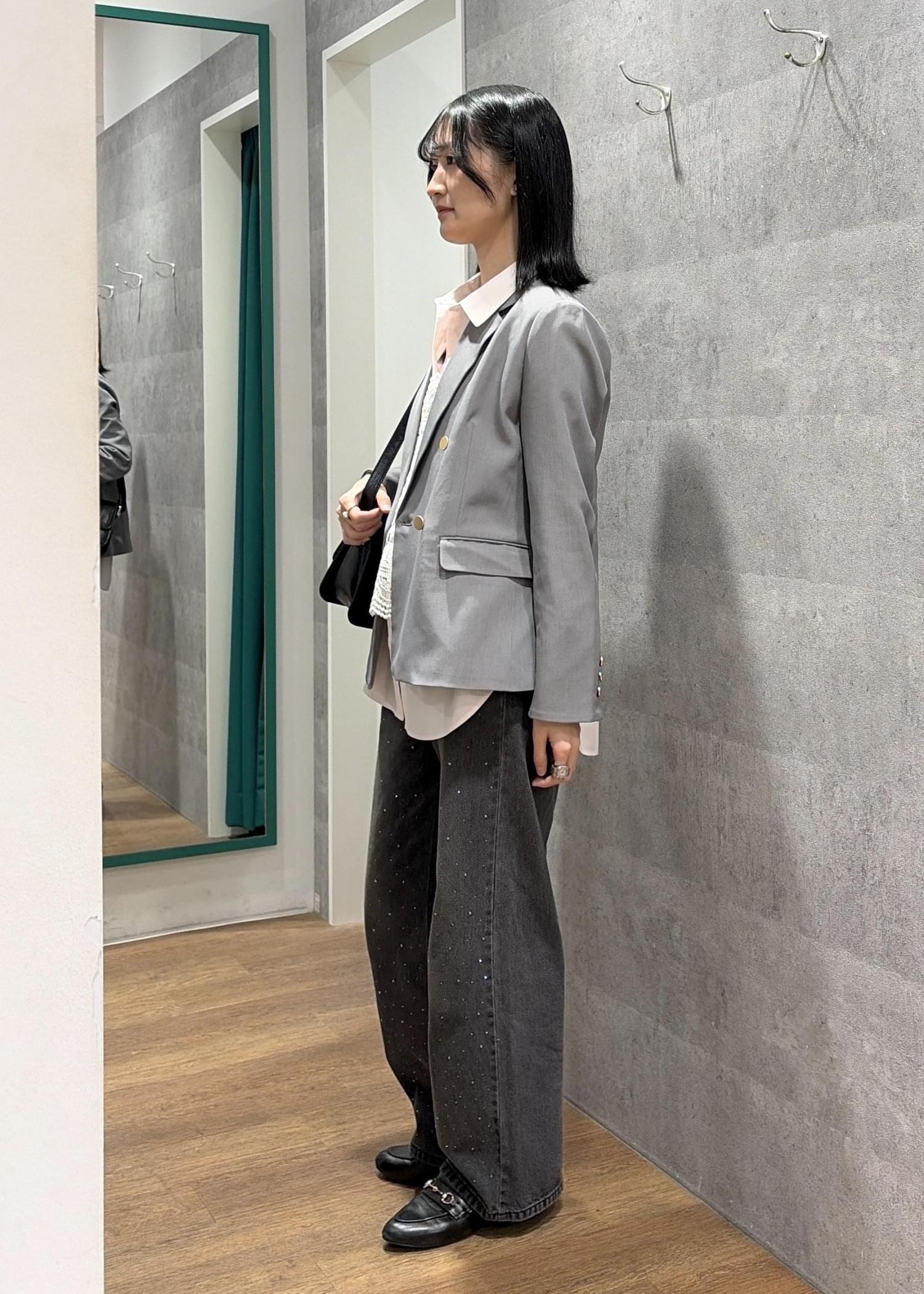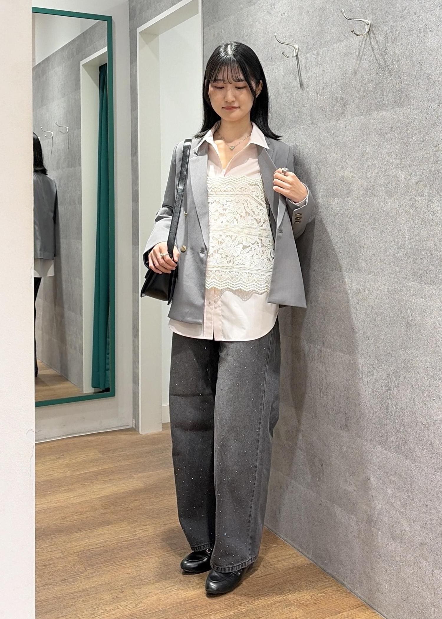 普段のデニムをビジューデニムに変えるだけでトレンド感のあるコーデになります。 -