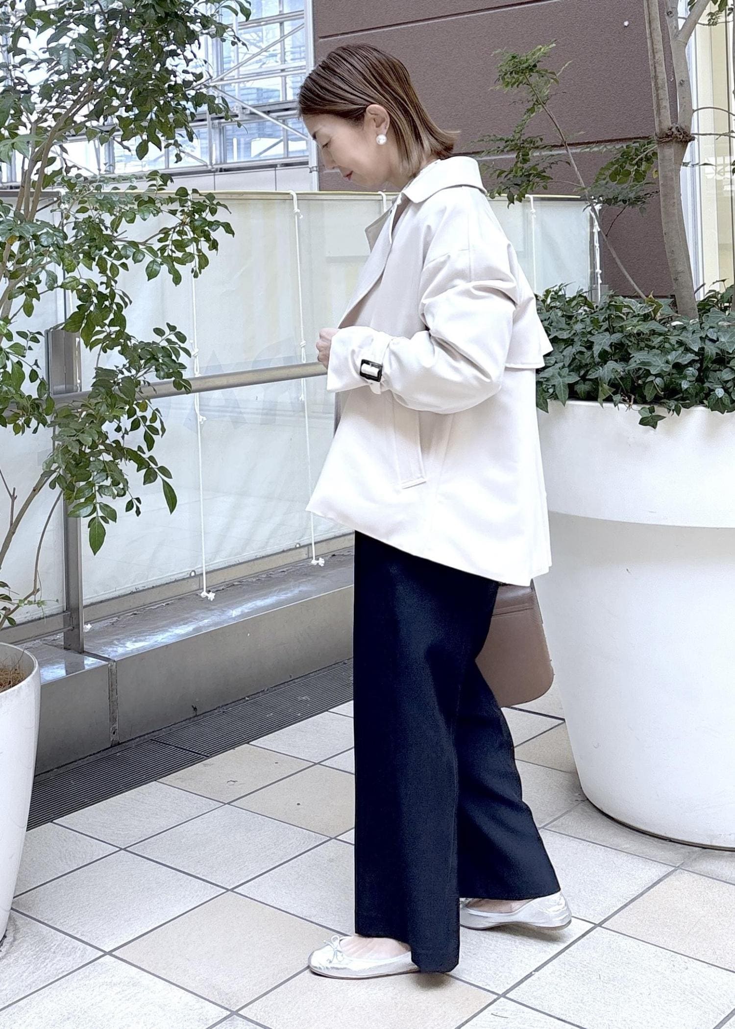 軽やかに羽織れる春のショートトレンチコート