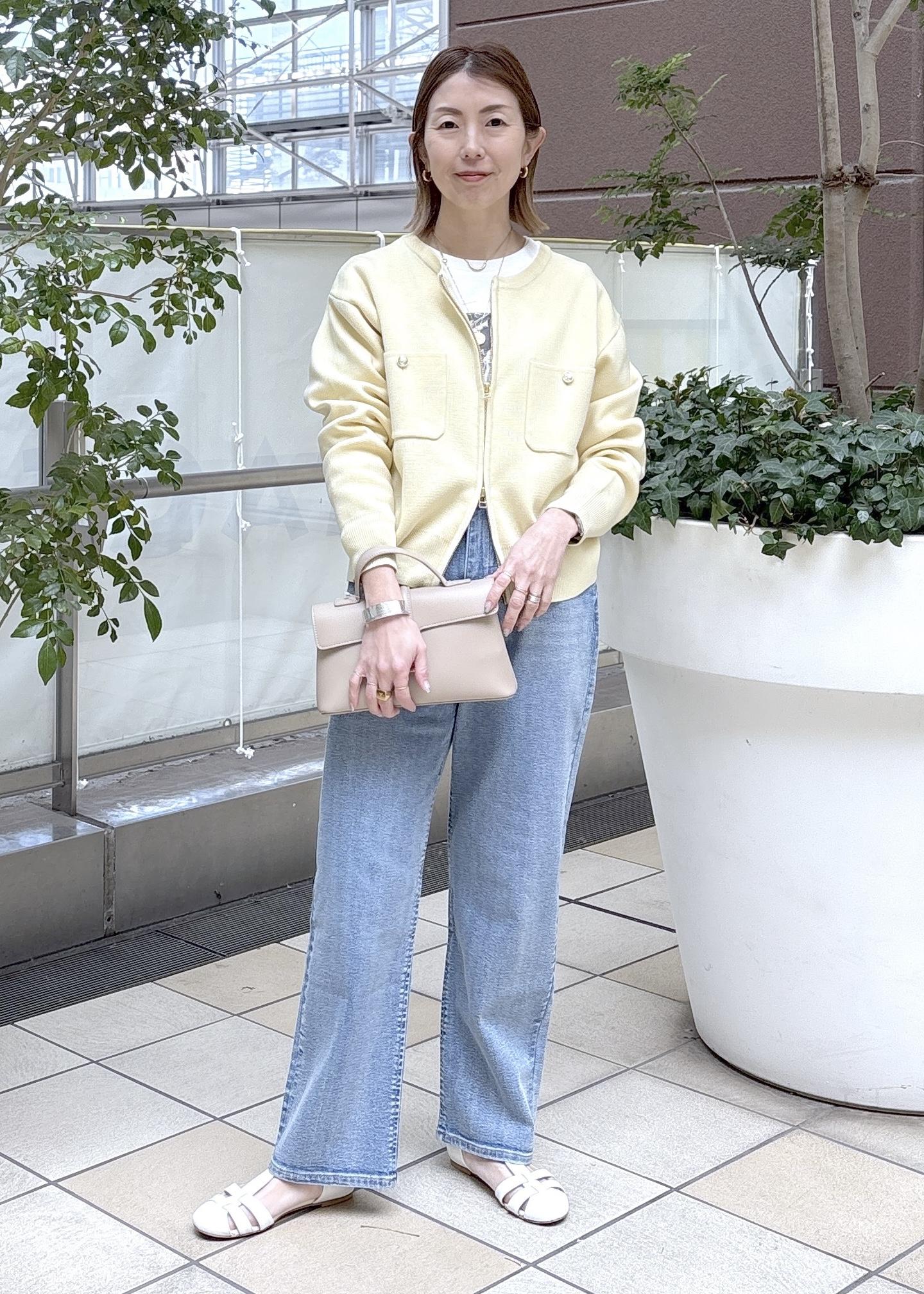 柔らかいイエローが春らしいカジュアルコーデ