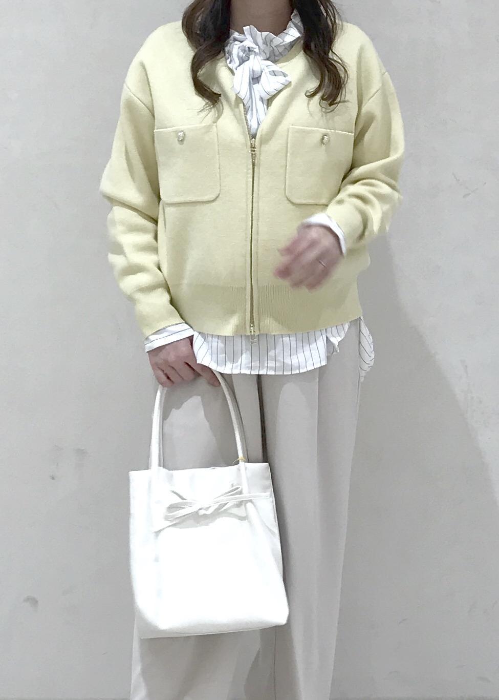 春にぴったりな黄色のカーディガンに