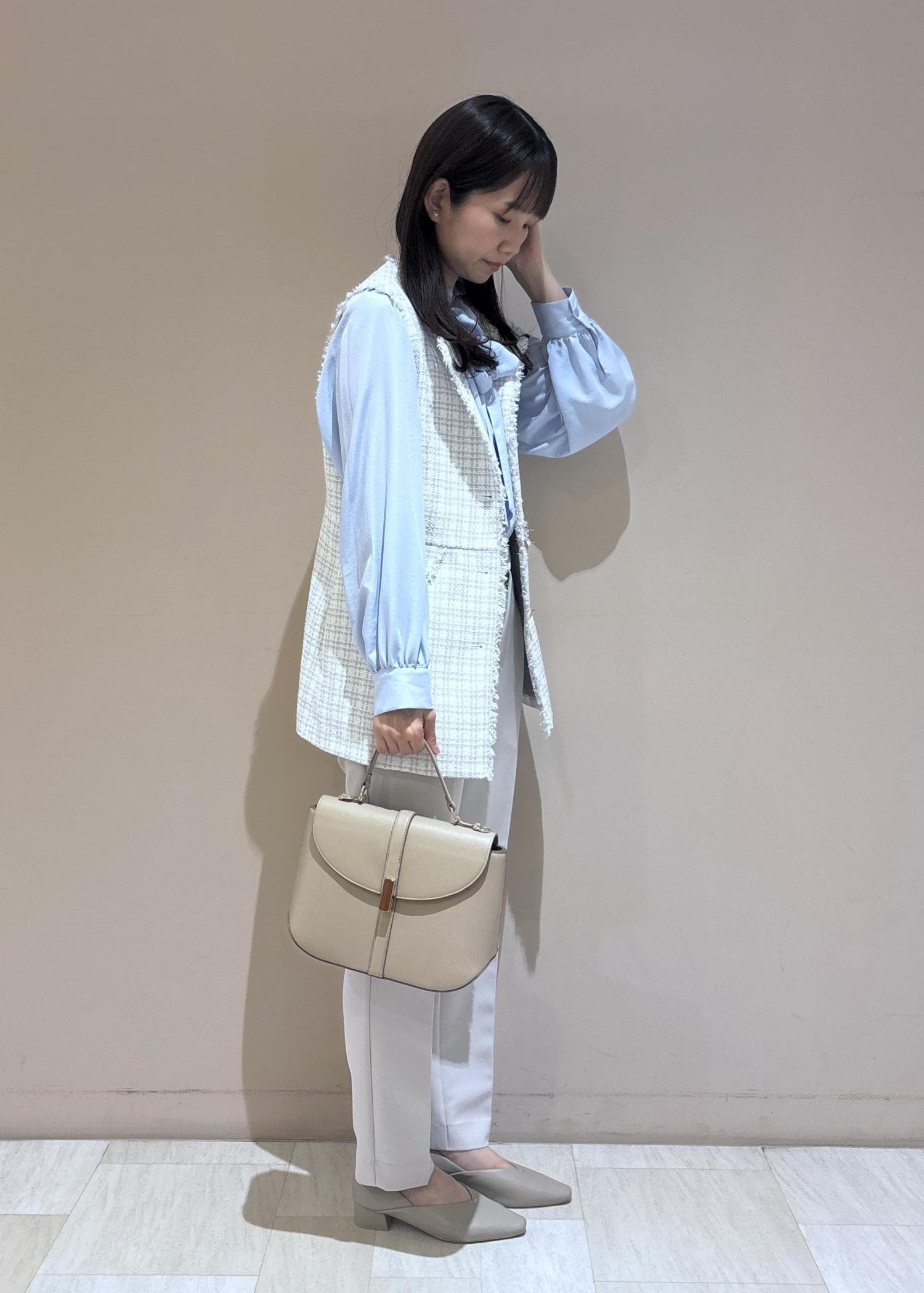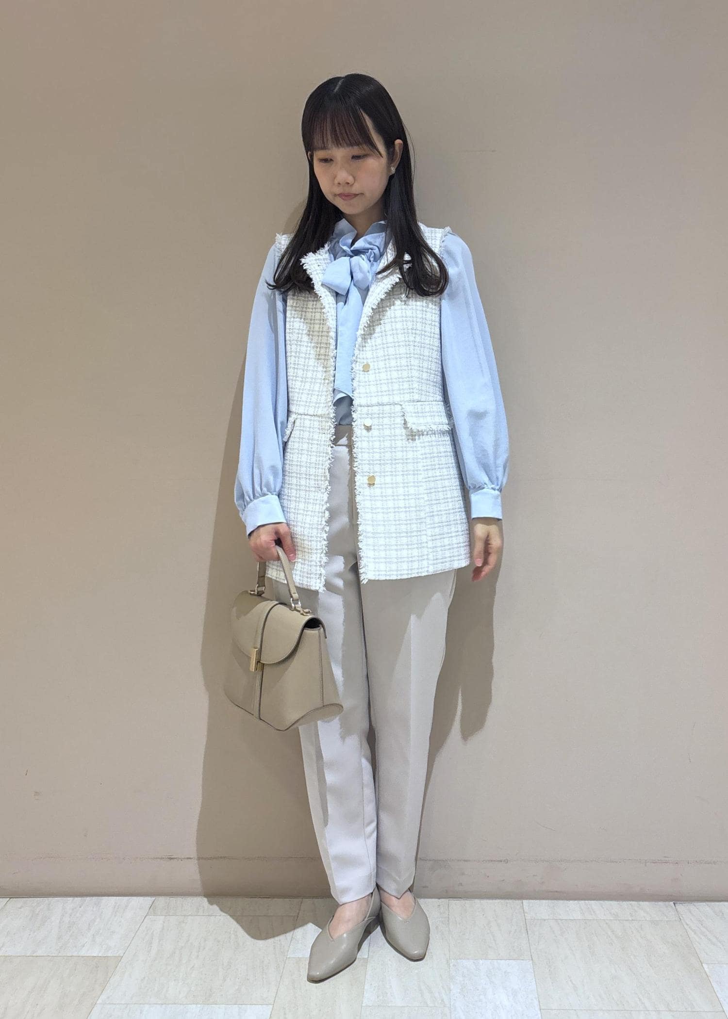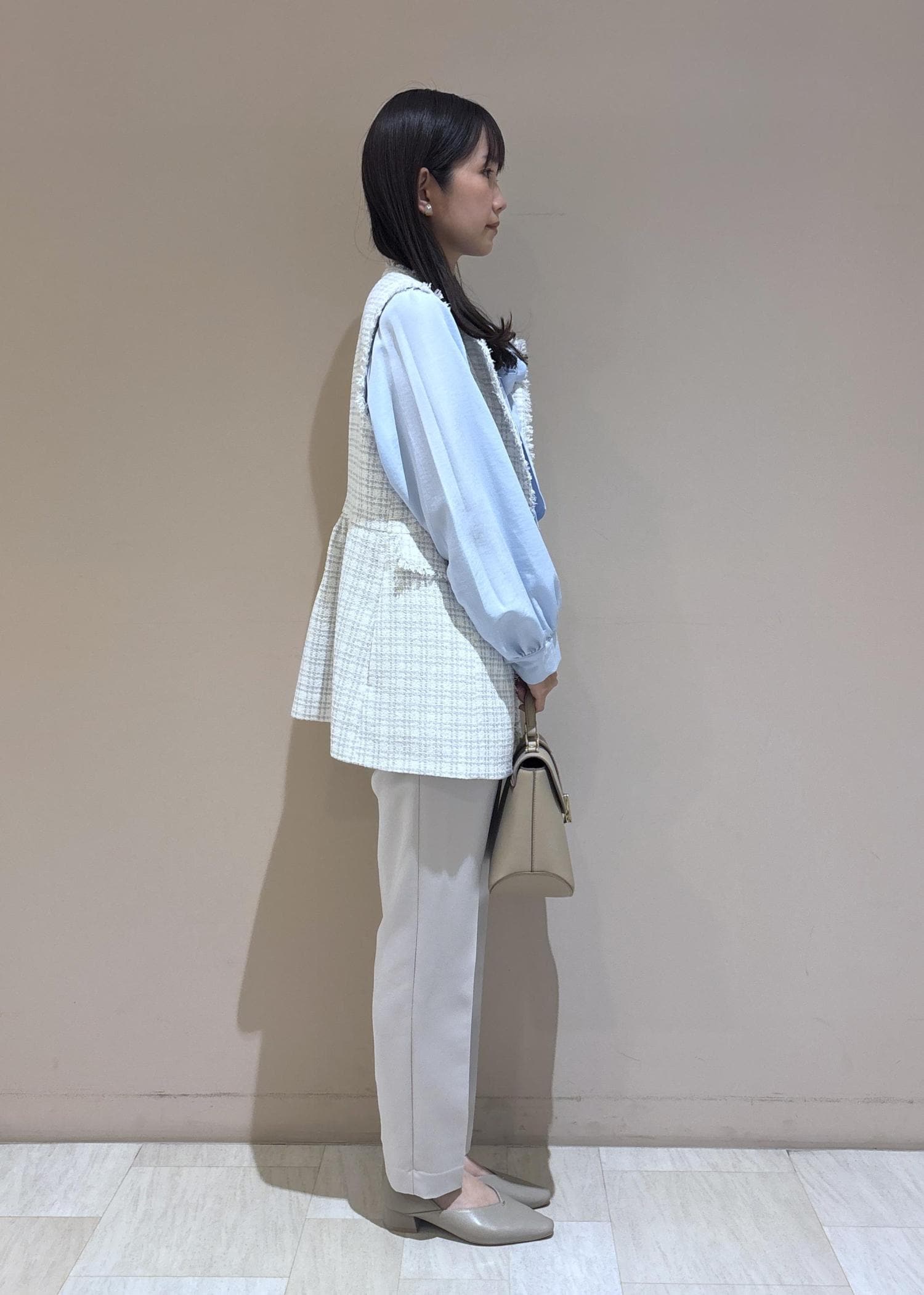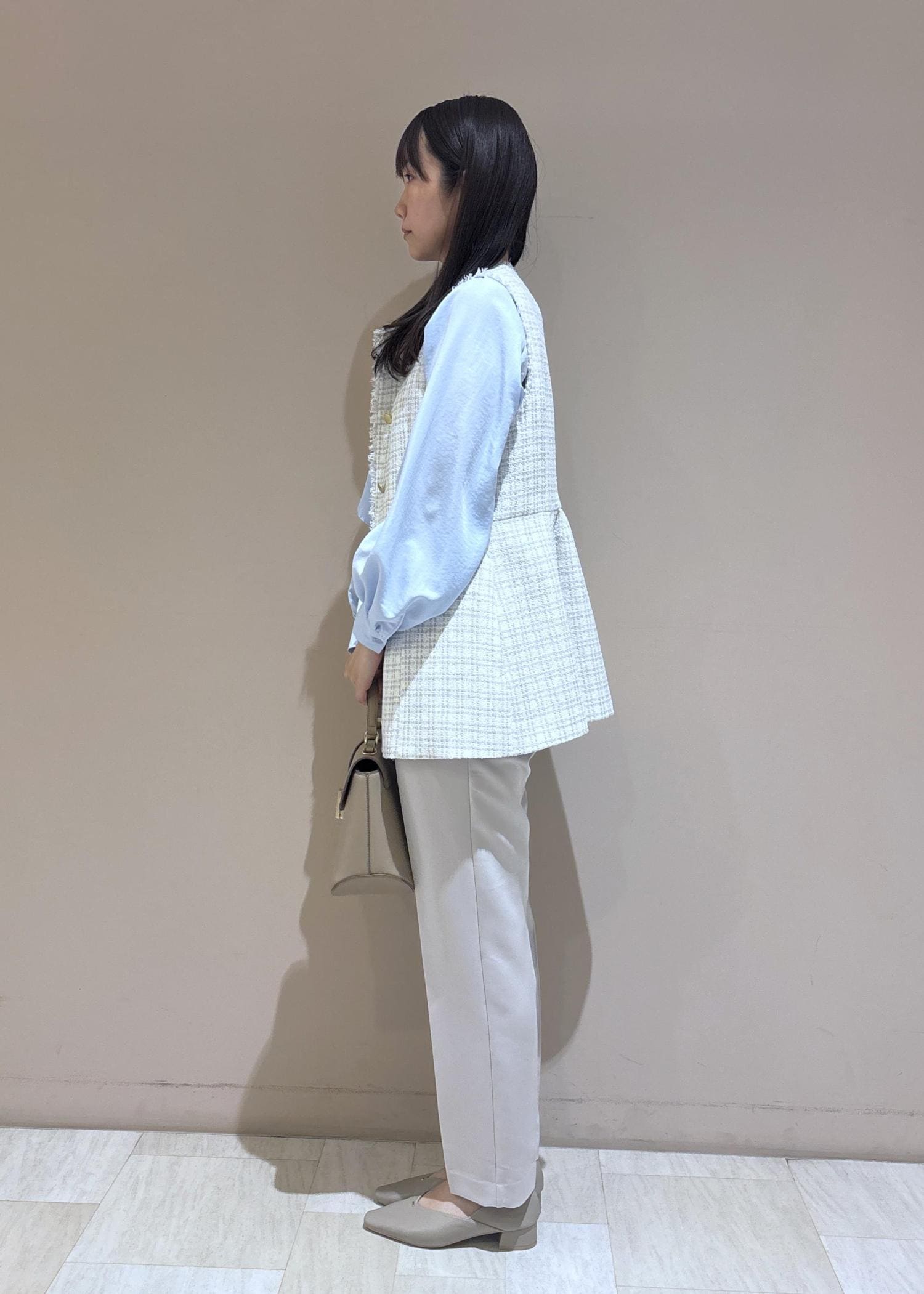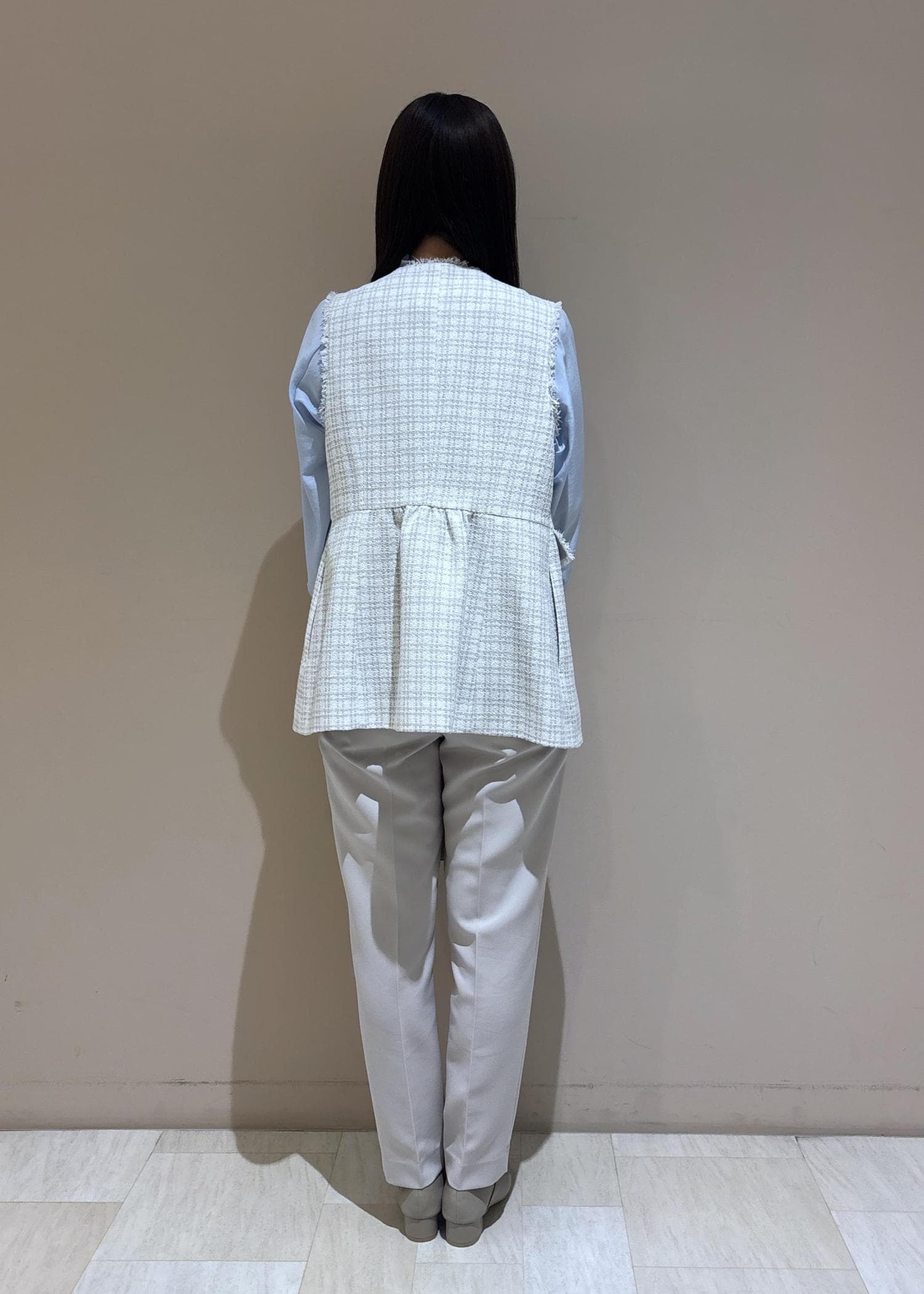 ROPÉ PICNIC【WEB限定カラー】ツイード金ボタンジレベスト/セレモニー対応・リンクコーデライトグレー / F¥8,998レビューヒップや腰まわりをしっかりカバーできる着丈が長めのツイードジレです。