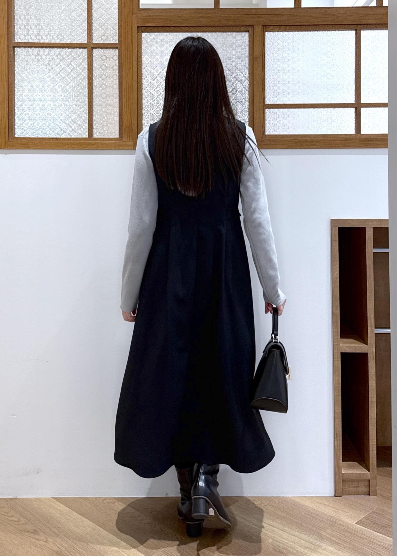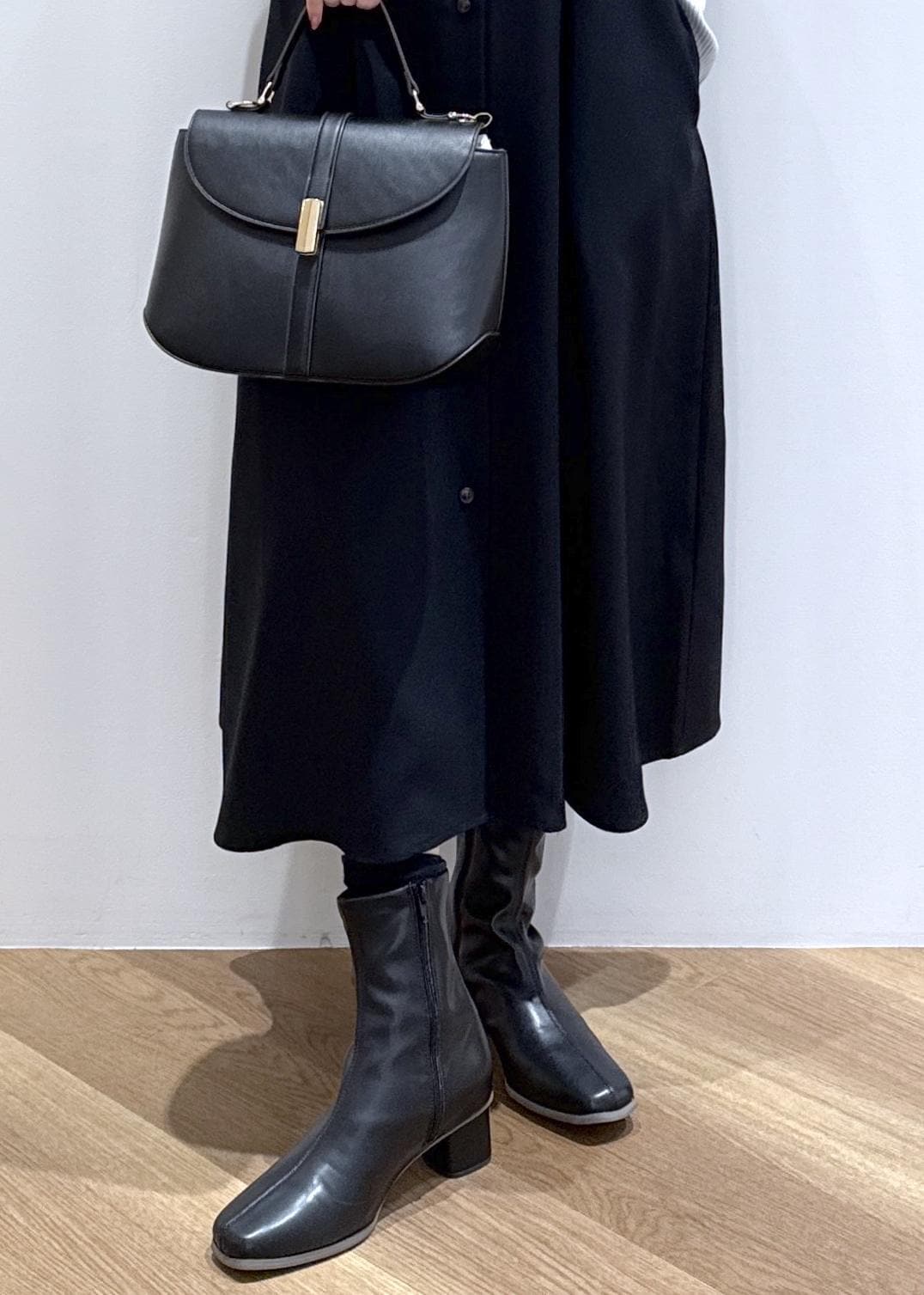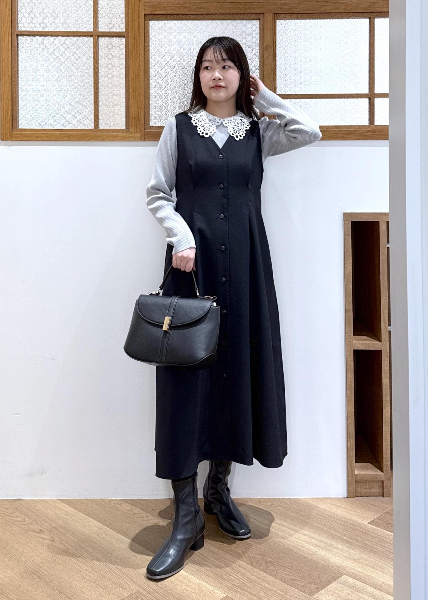 小物は黒で合わせて、統一感を出しました。