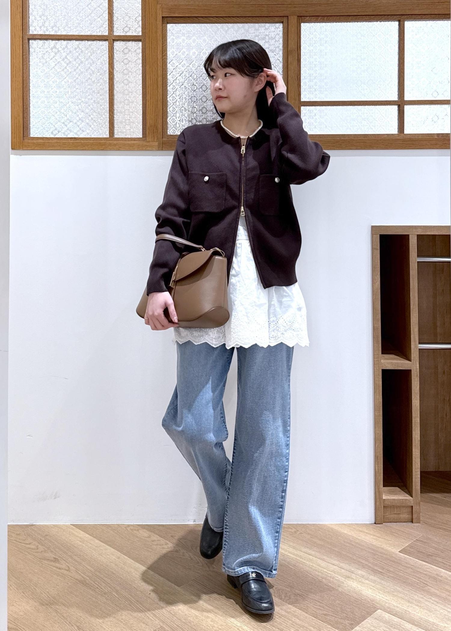 綺麗めのデニムを合わせて、大人カジュアルな合わせにしました。