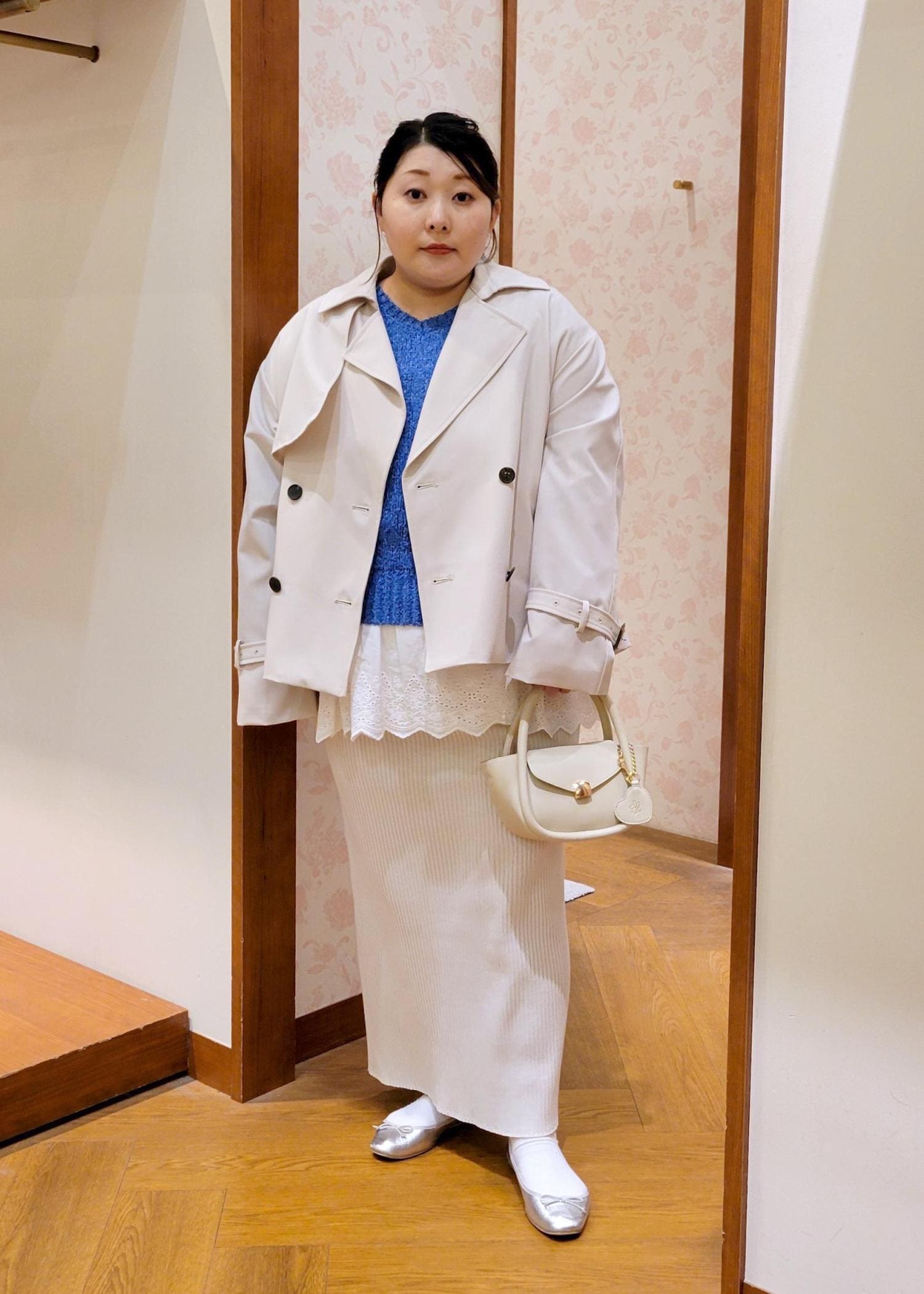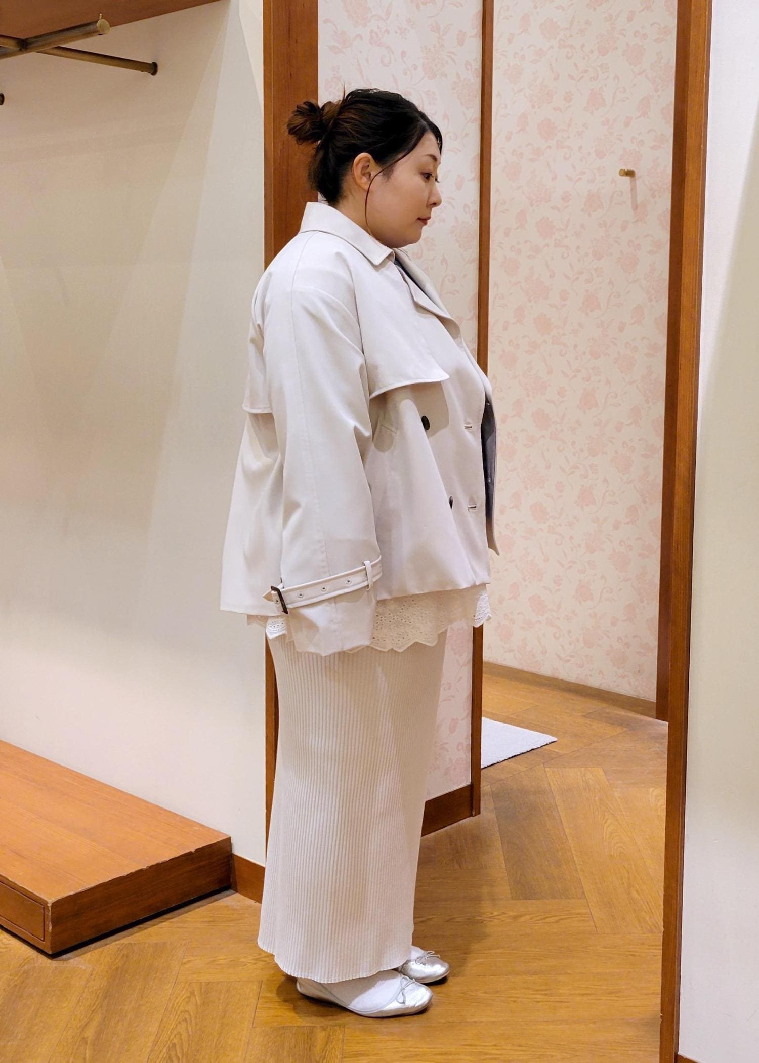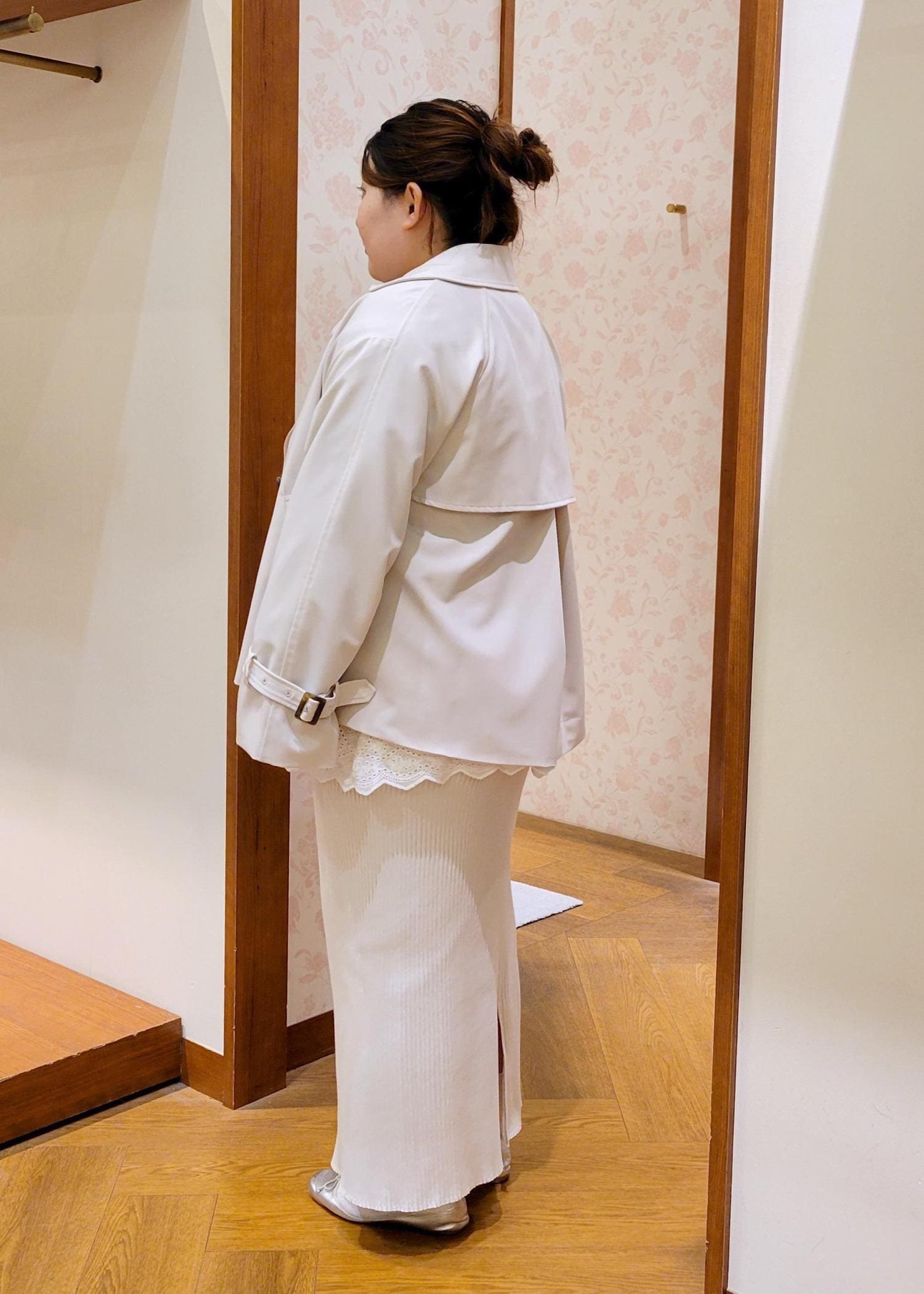 2BUY10%OFFROPÉ PICNICショート丈トレンチコート/撥水・花粉ガードベージュ / F¥13,200レビュー全体的にゆったりしたシルエットです。バックスタイルはお尻が隠れる着丈なので体型カバーになります。