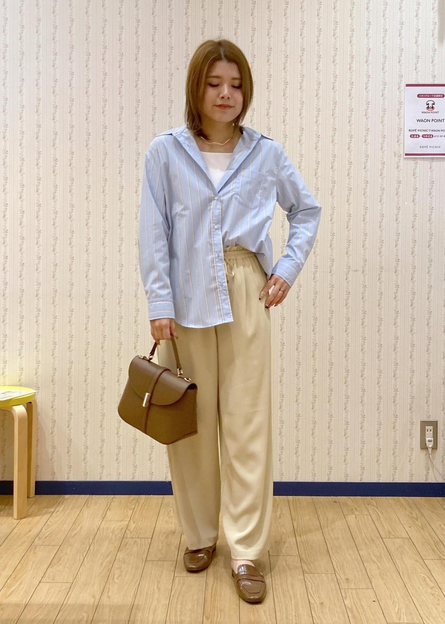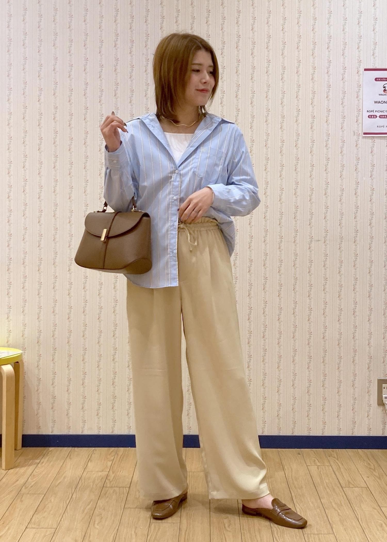 ブルー×イエローの春色ワイドパンツコーデ