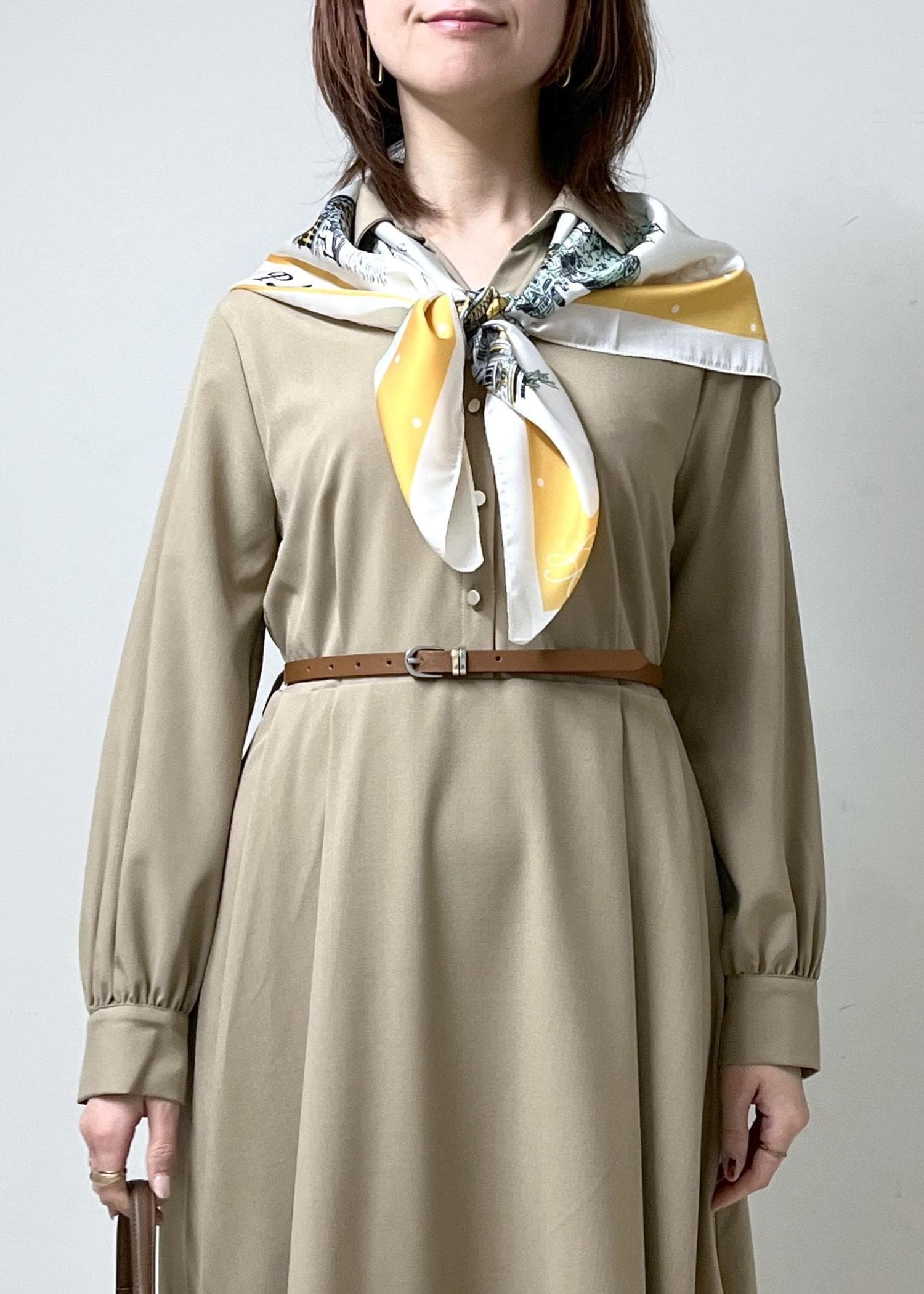 共布のリボンベルトは取り外しができるので、手持ちのベルトを合わせても良いです♪ -