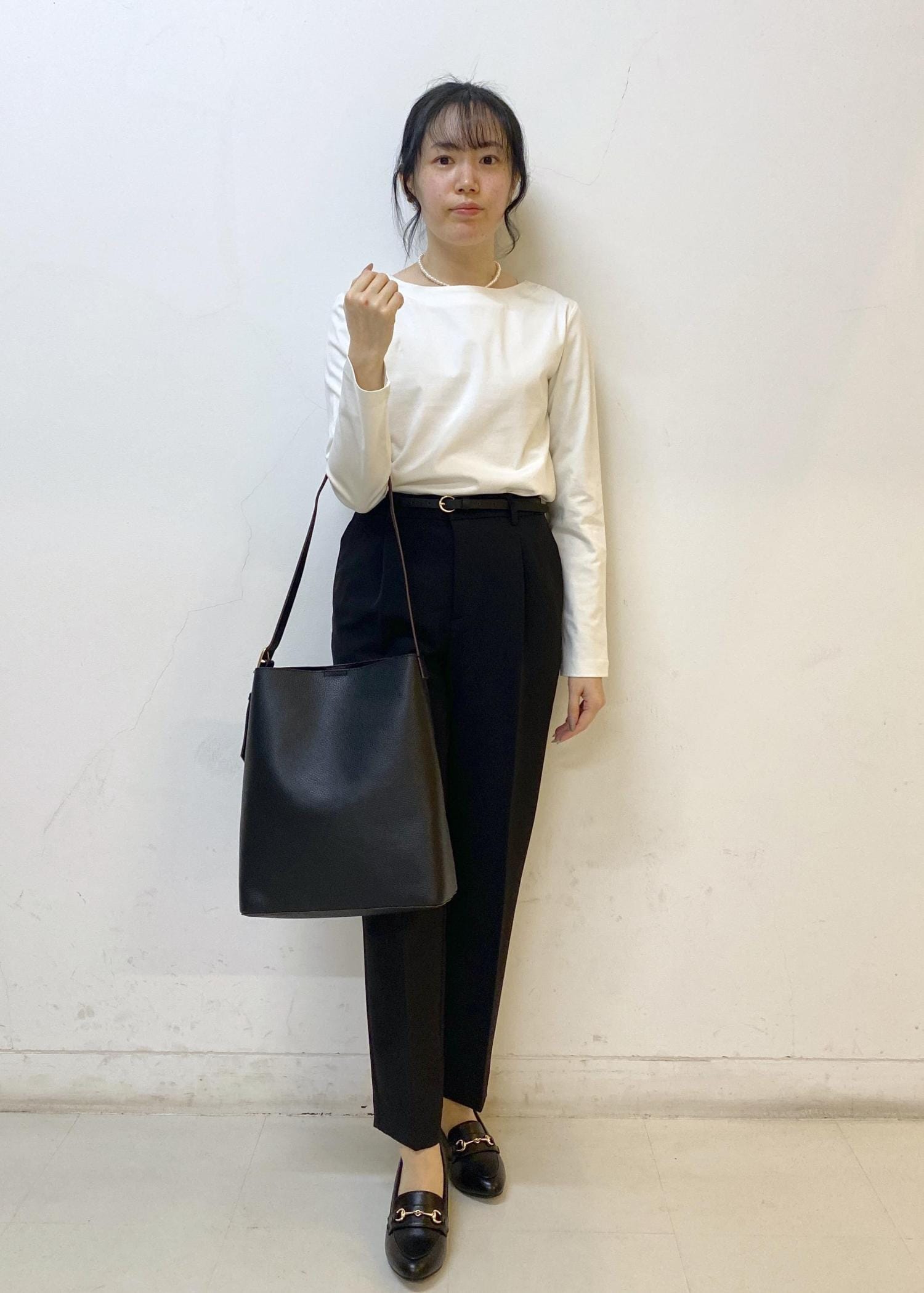 小物もブラックカラーで揃えてきちんと見え。