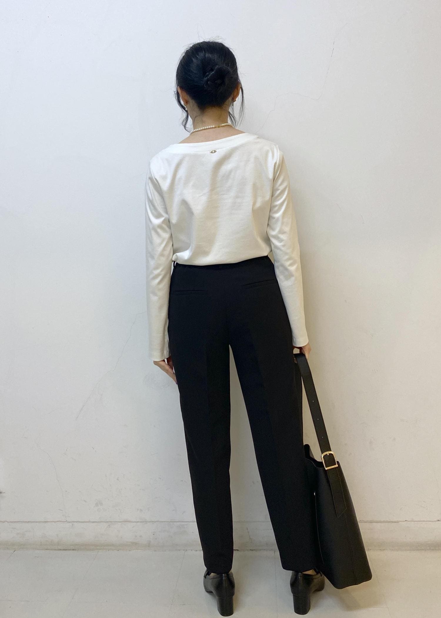ウエストタックとセンタープレスのかかったシルエットは、脚のラインを綺麗にみせてくれます。