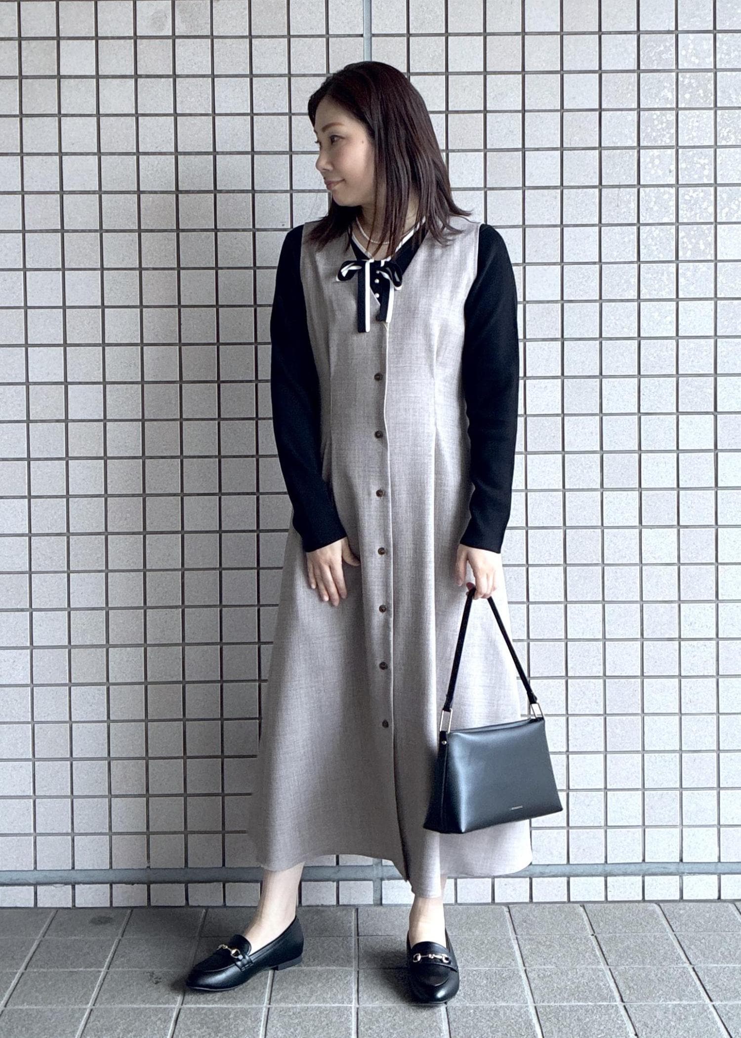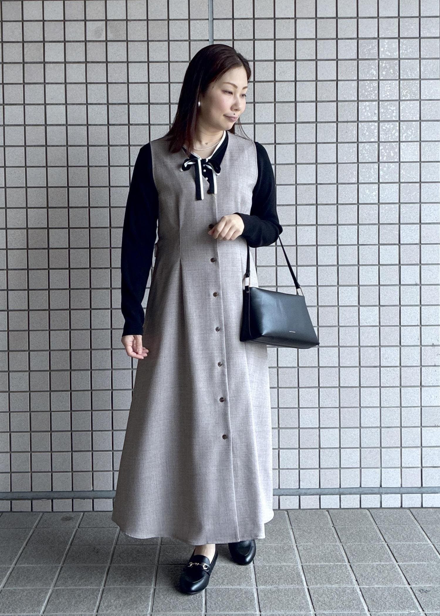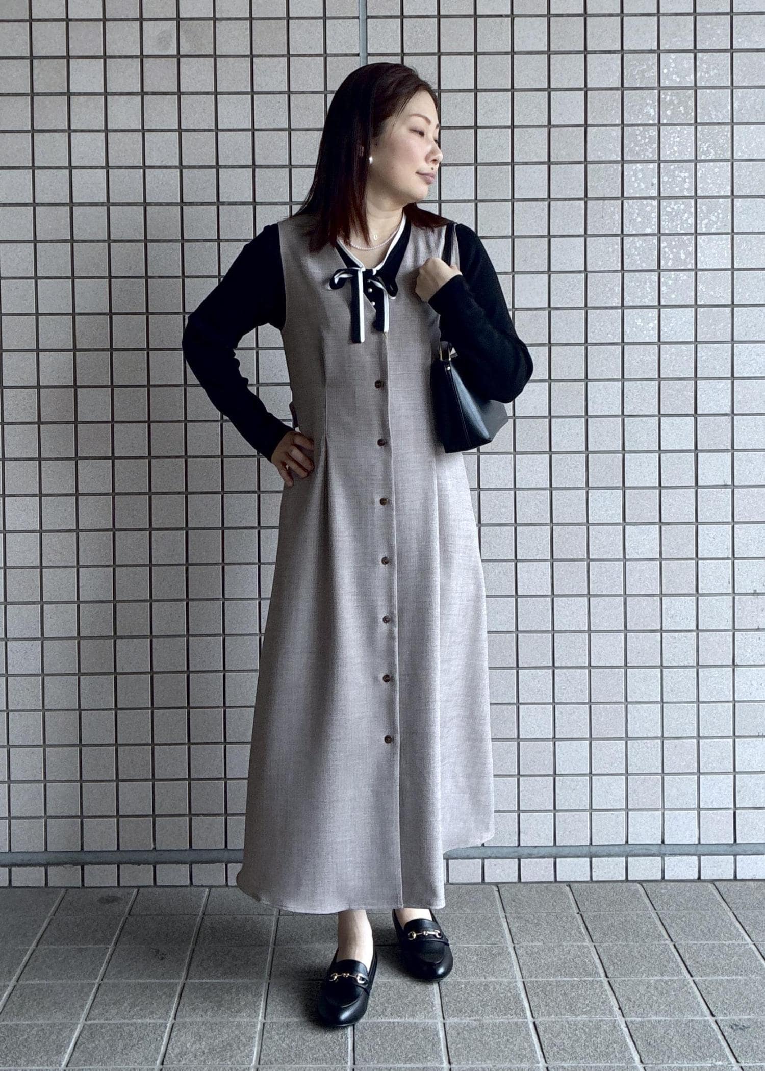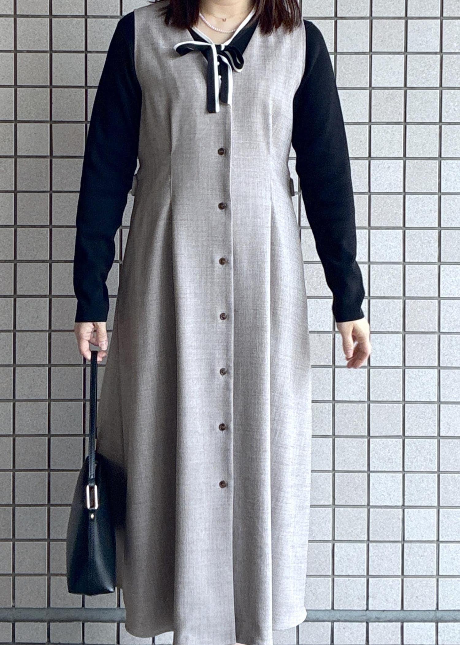 ROPÉ PICNICウエストタックジャンパースカートグレー系 / F¥7,997レビューしっかりと長さのあるロング丈ワンピースです。