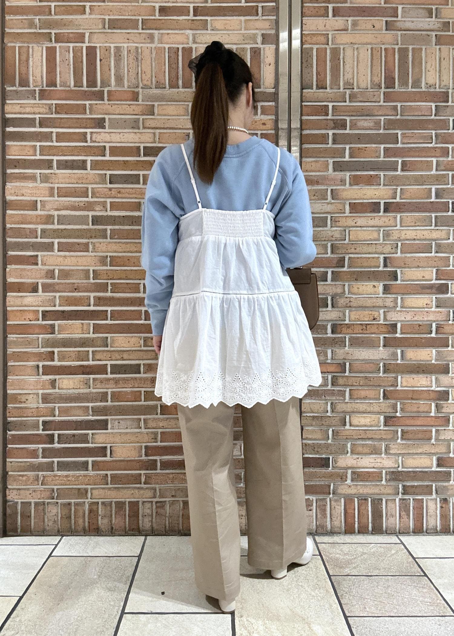 2BUY10%OFFROPÉ PICNICウエストタックチノパンツベージュ / S¥6,490レビュー広がりすぎないワイドシルエットなので、小柄さんにも安心の丈。
