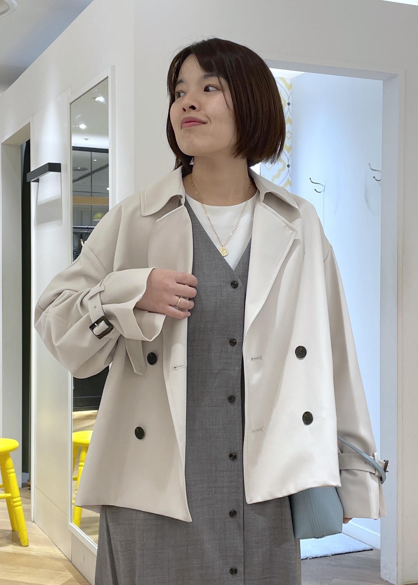 ROPÉ PICNICショート丈トレンチコート/撥水・花粉ガードベージュ / F¥13,200レビュー柔らかな素材感で羽織心地の良いショートトレンチコートです。身頃はゆったりとしており、厚手のトップスの上からでもごわつかず羽織やすいです。撥水加工や花粉ガードなど春に嬉しい機能性素材です。