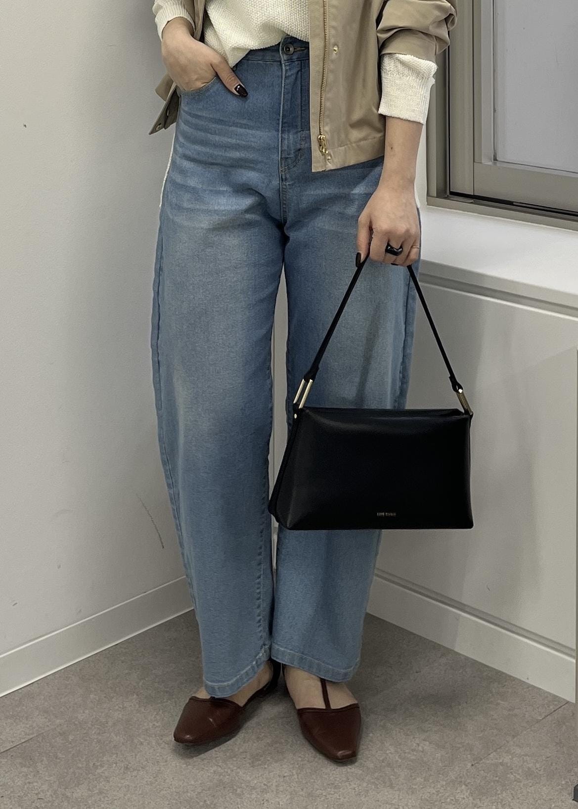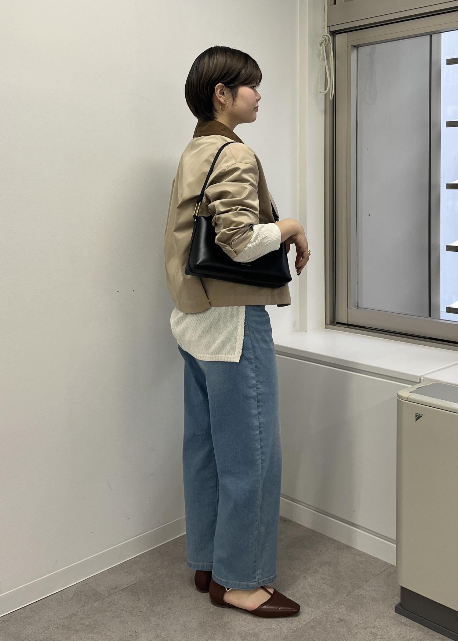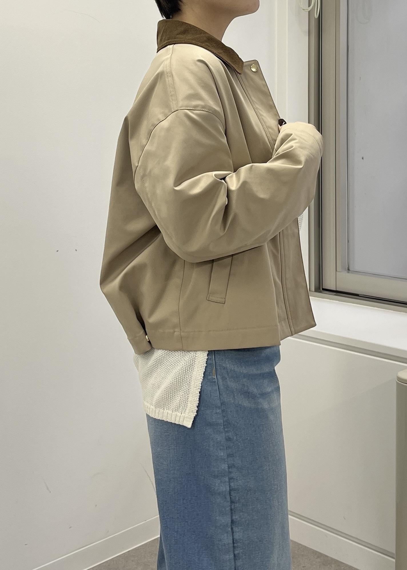 ややカジュアルなアウターなので、女性らしい雰囲気でお召しになりたい方はサテンスカートやIラインスカートなどを合わせて頂くとカジュアルになり過ぎずにお召し頂けます!