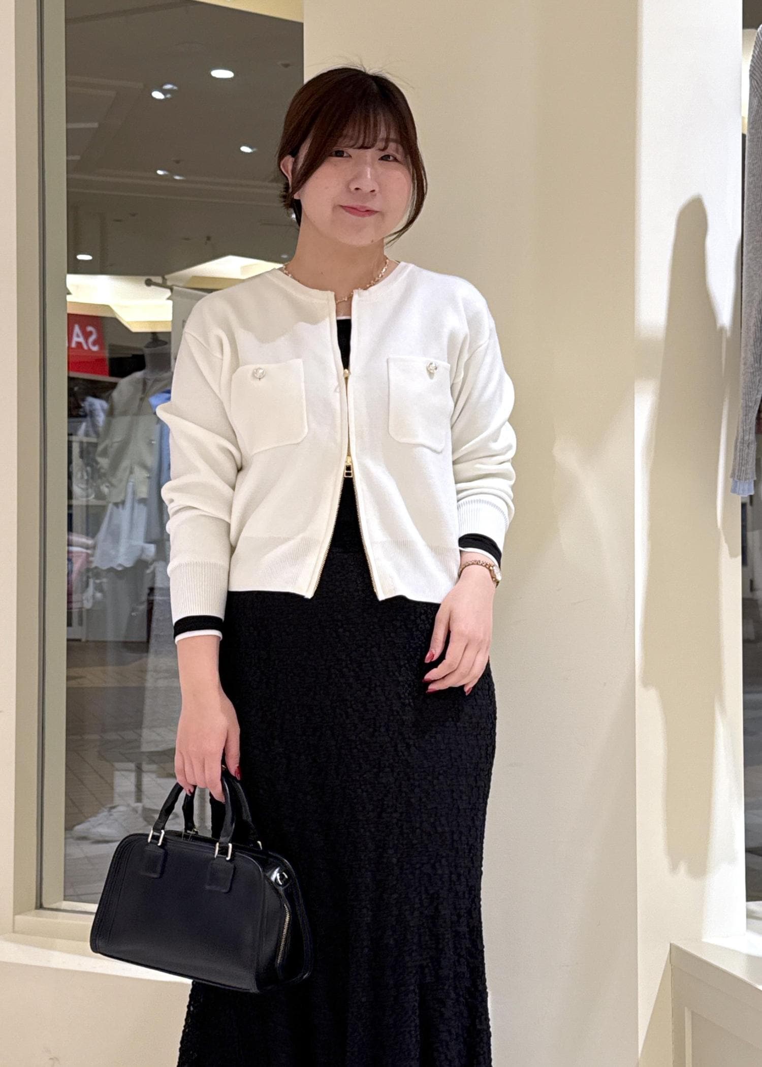 ROPÉ PICNICミラノリブダブルジップニットカーディガンオフホワイト / F¥6,490レビュー骨格ウェーブさんはWジップめウエスト位置を高く見せるのがおすすめ。