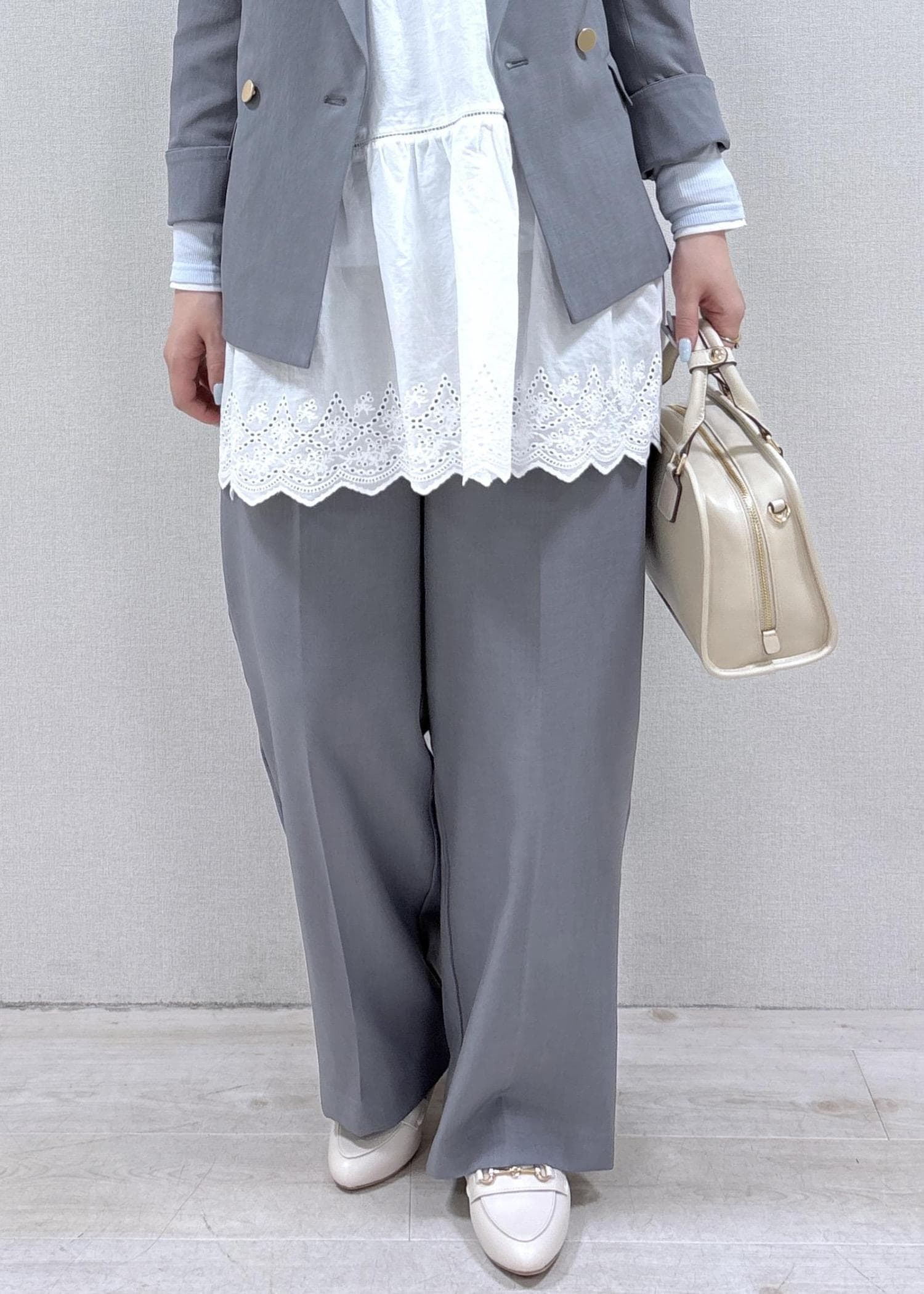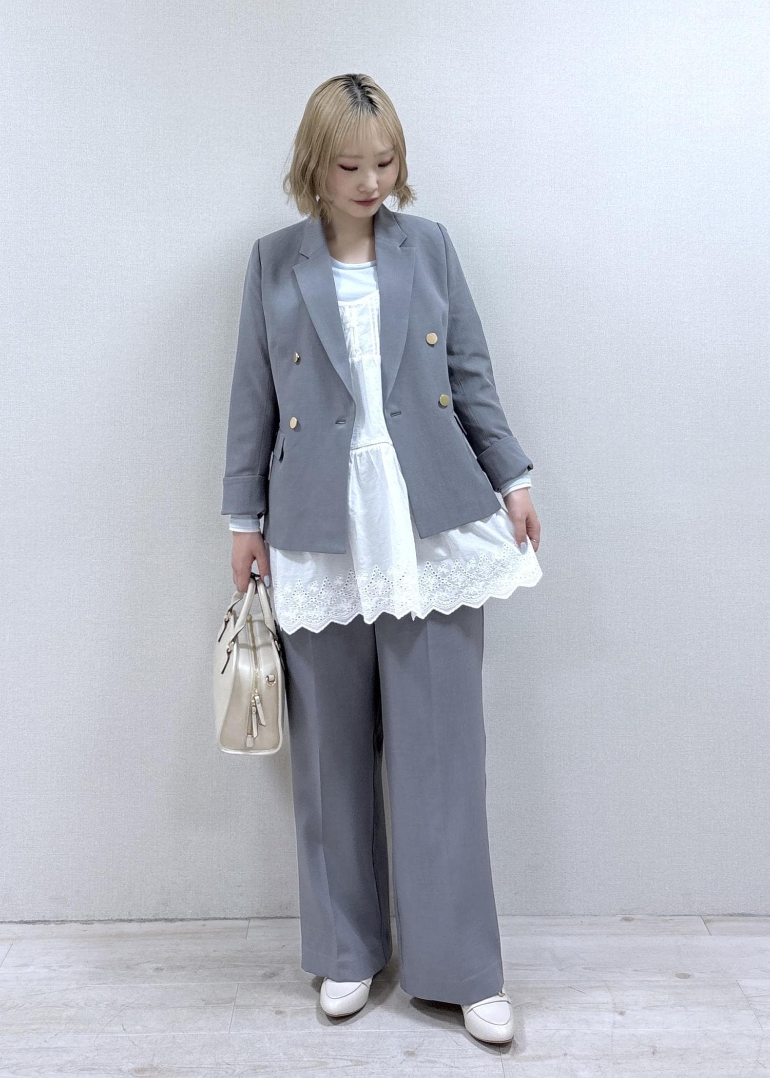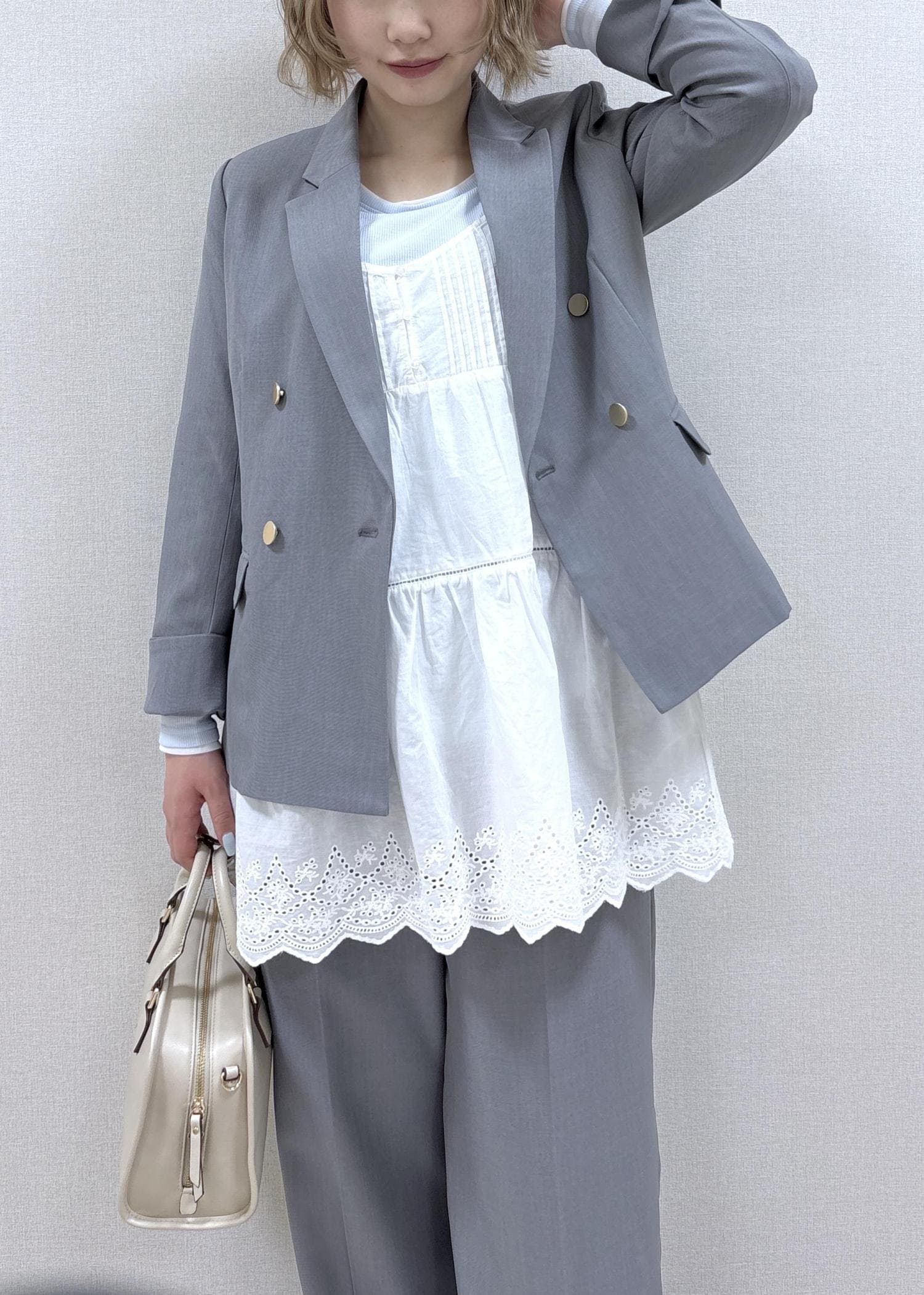 着用のグレーはWEB・ルミネ店限定カラーです。