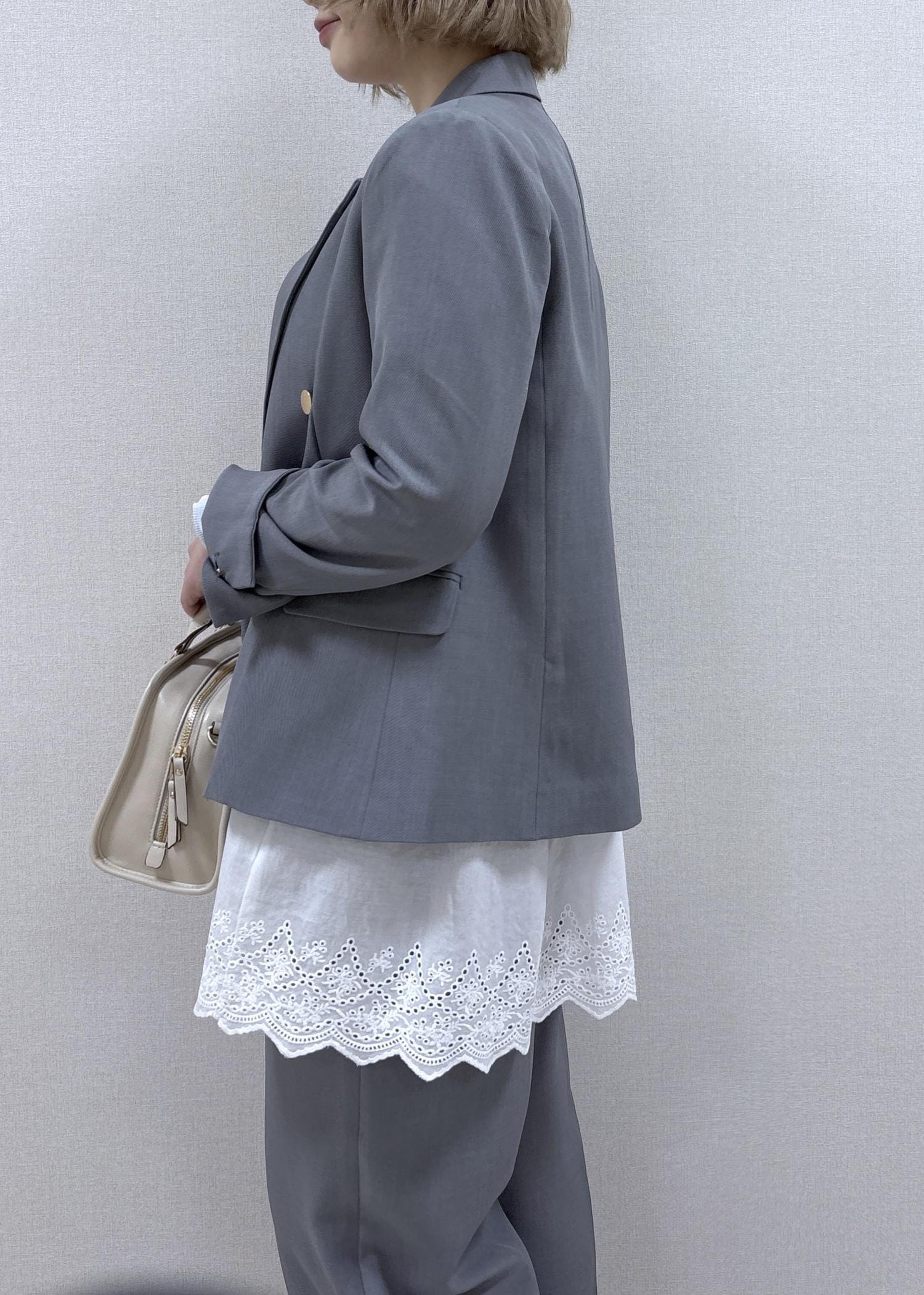 ブルーのインナーがアクセントになり、爽やかな印象にしてくれます◎
