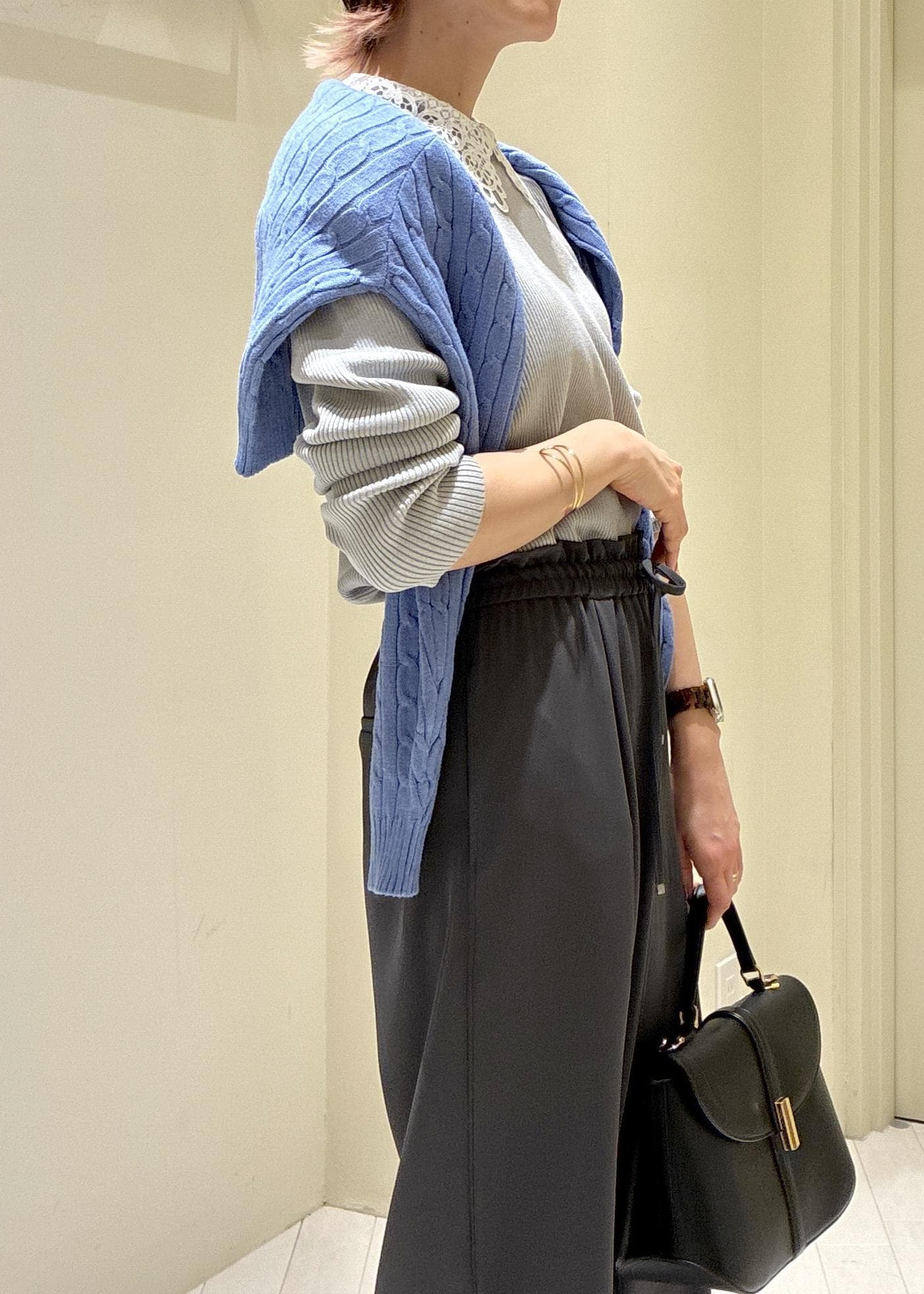 レース衿がスタイリングのアクセントになり、一枚着でもレイヤードスタイルでも映えるデザインです。 -