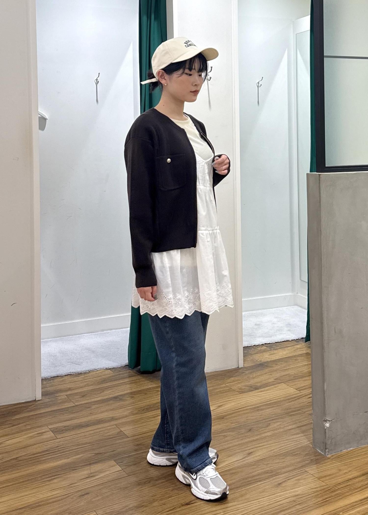 肩紐で長さを調節できるので、着方に合わせて調節すると着こなしやすくなります。 -