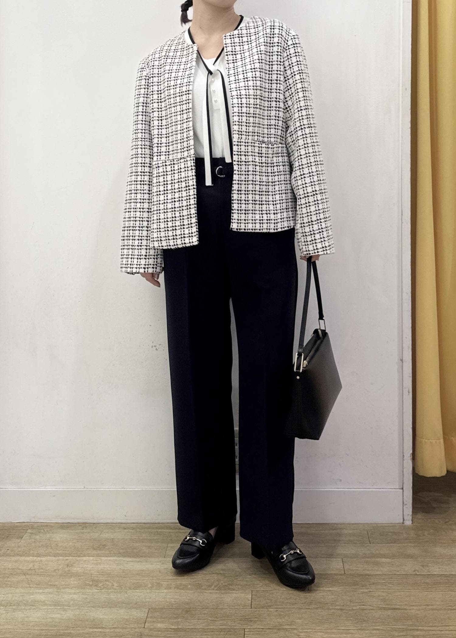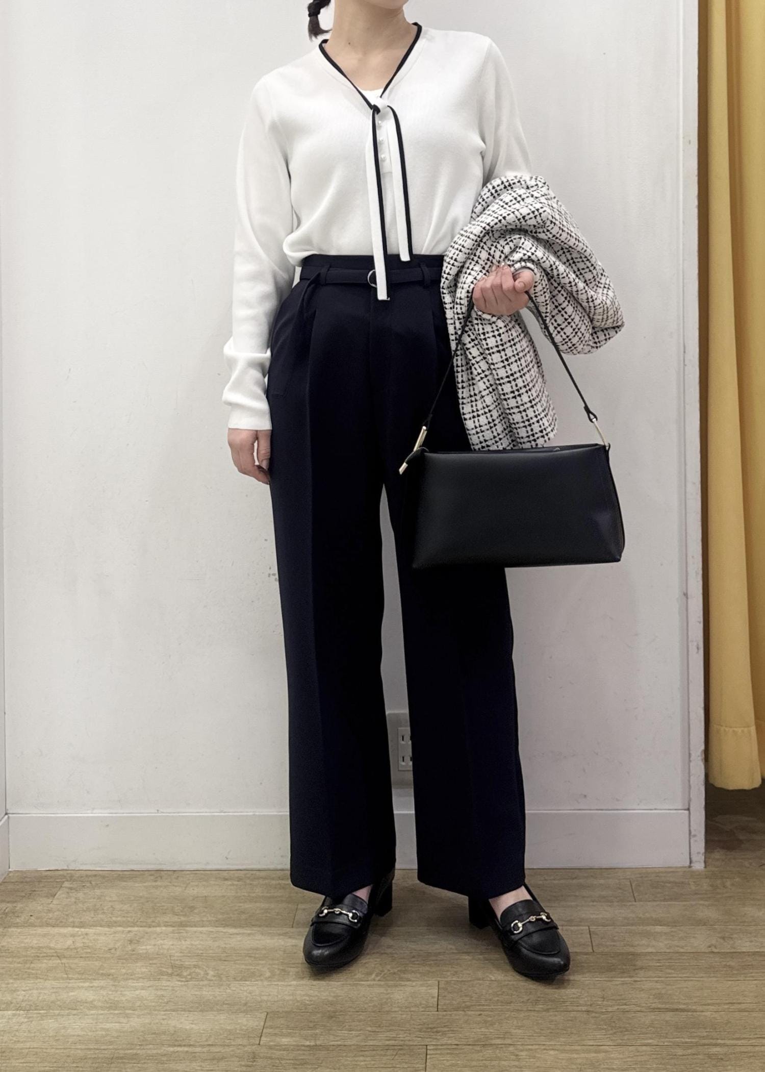 広がりすぎないストレートめのワイドパンツで、スッキリ見えするキレイなシルエットです。 -