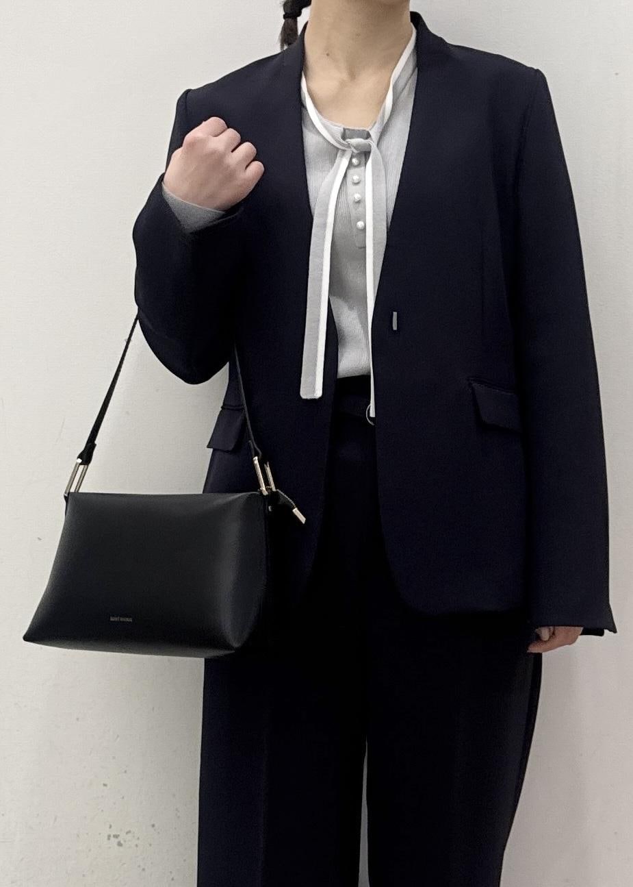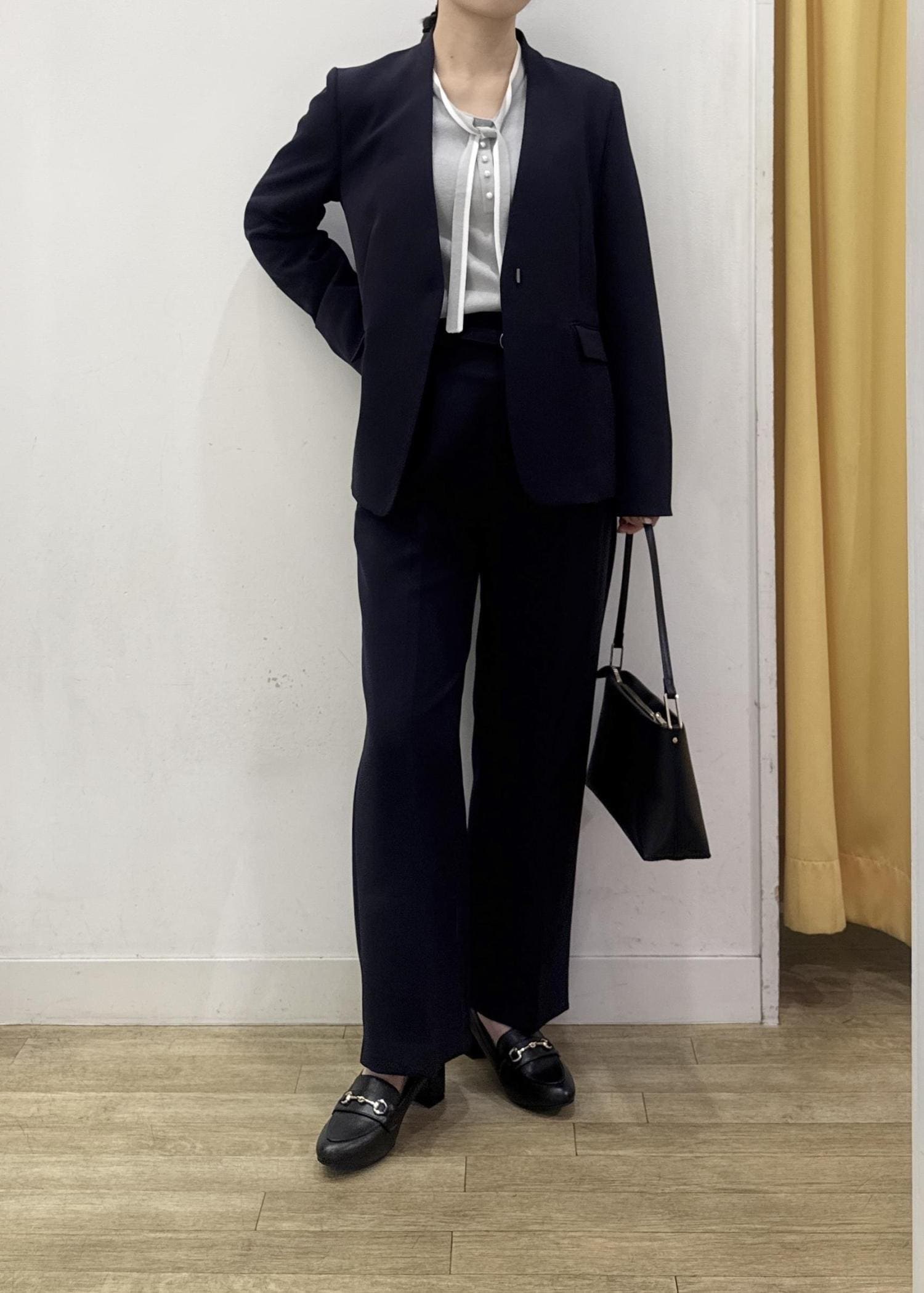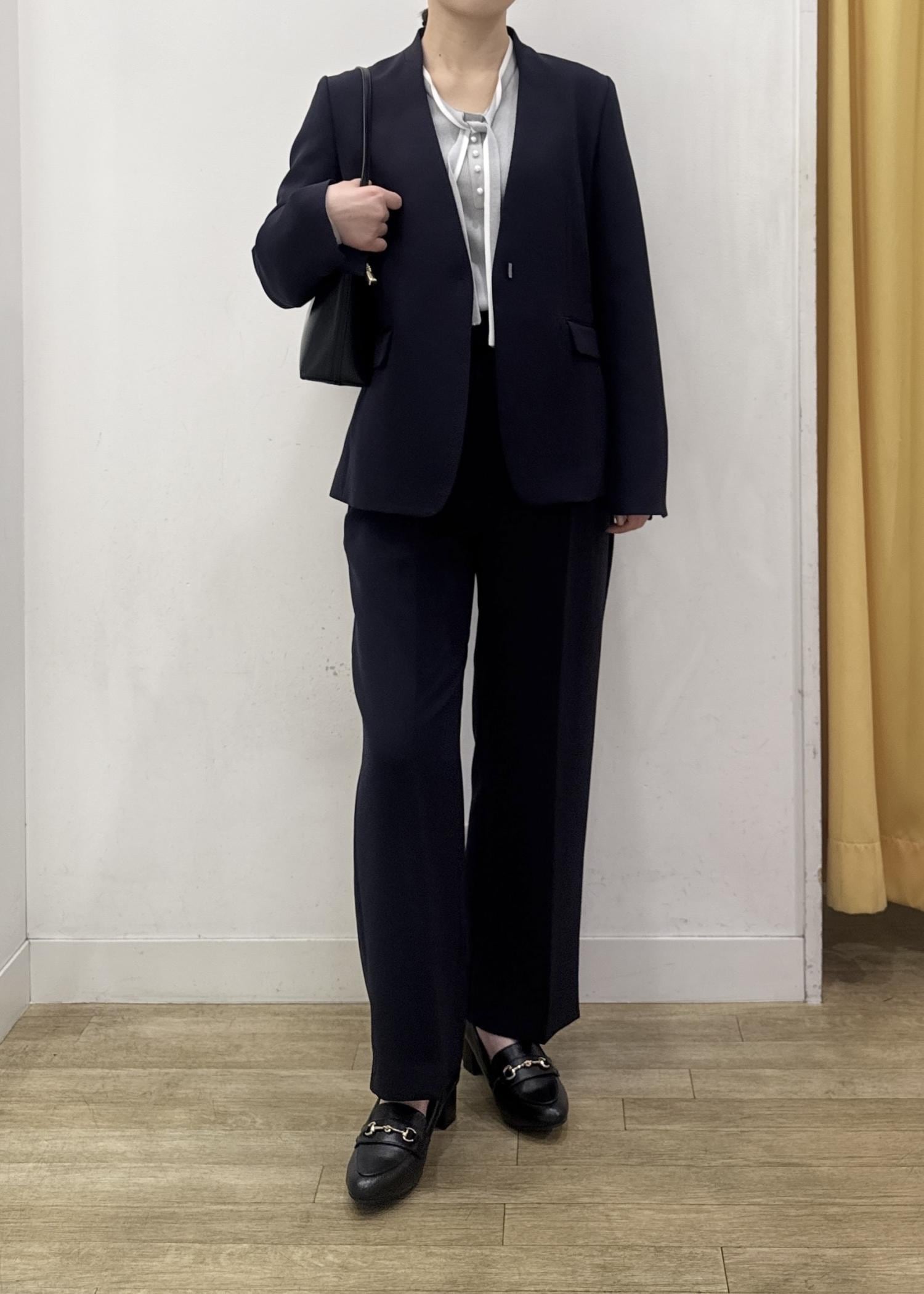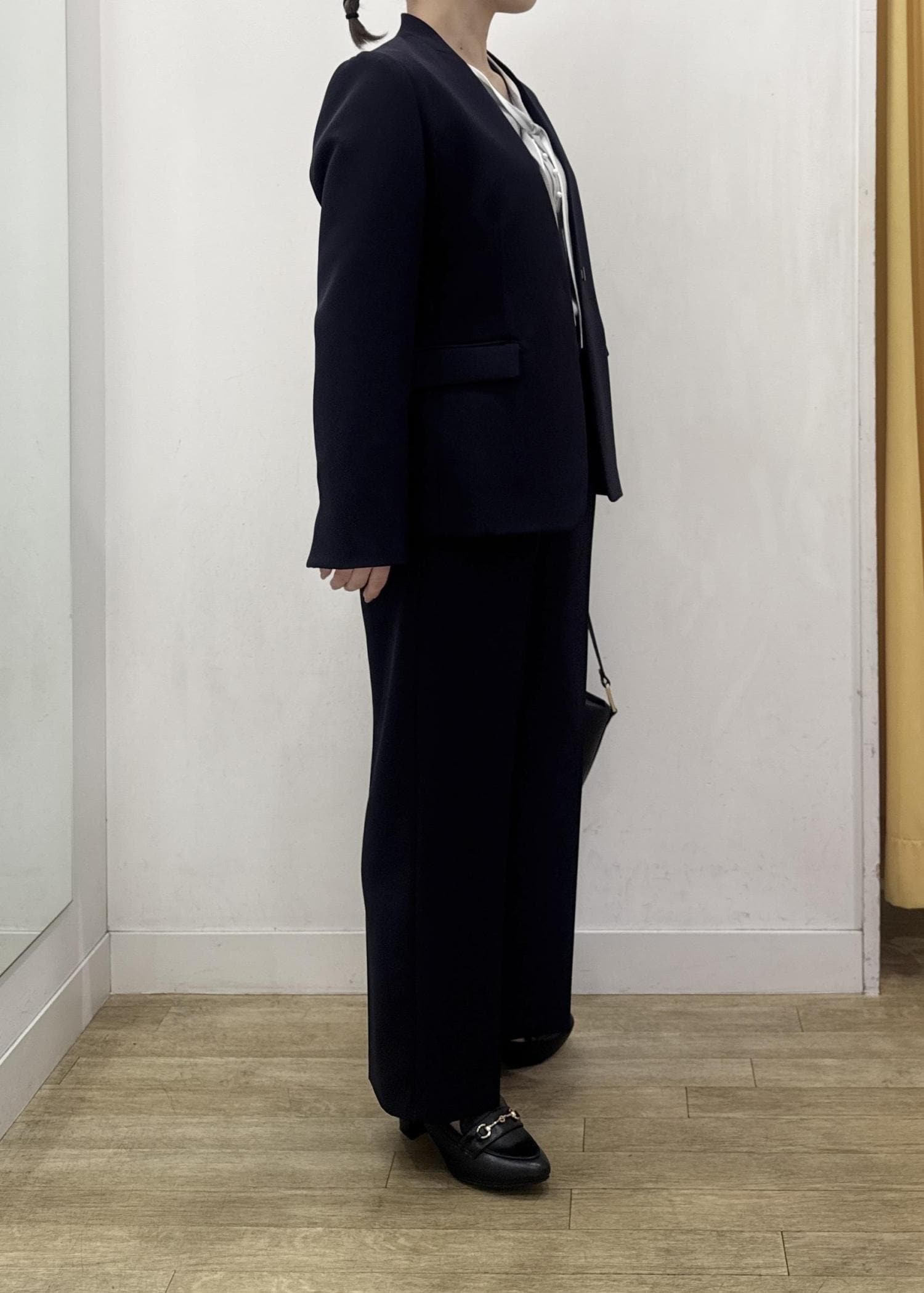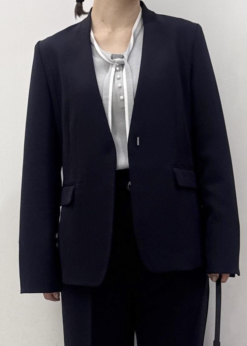 デザインブラウス、ハイゲージニットなどシンプルなデザインのジャケットなのでトップス選びに迷わず着回し力があります。 -