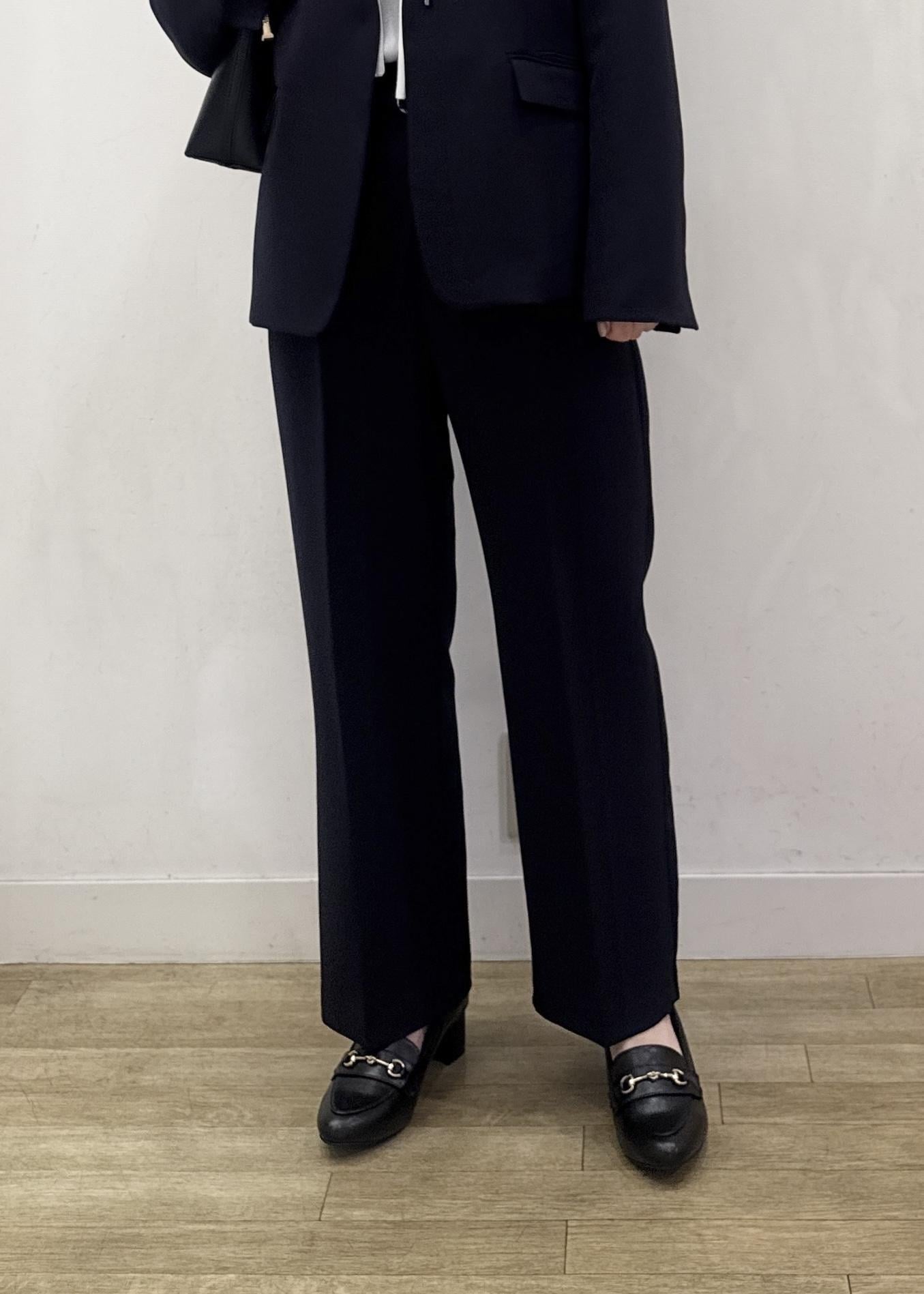 広がりすぎないストレートめのワイドパンツで、スッキリ見えするキレイなシルエットです。 -