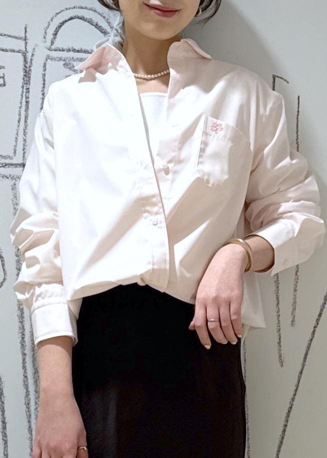 張りと柔らかさ、どちらも感じられる生地感。身幅・袖幅共にゆとりがあるサイズなので羽織りとしても重宝します。着丈はお尻が隠れる長さ。オンオフ問わず着回せるデザインなのも嬉しいポイント。