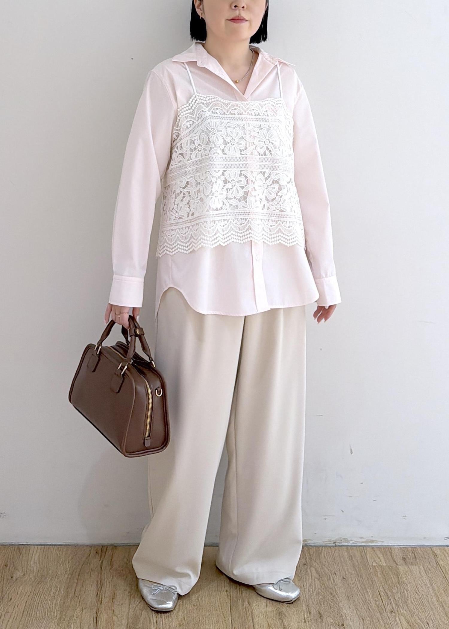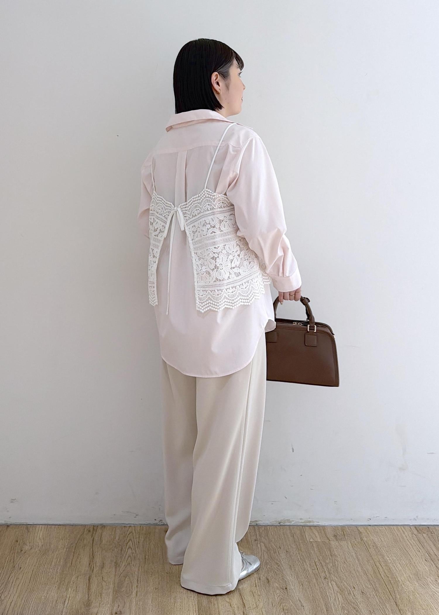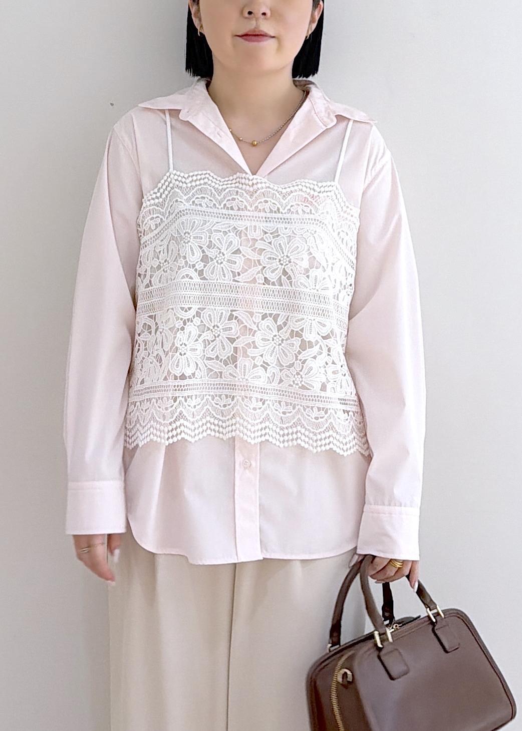 シャツ × レースビスチェ