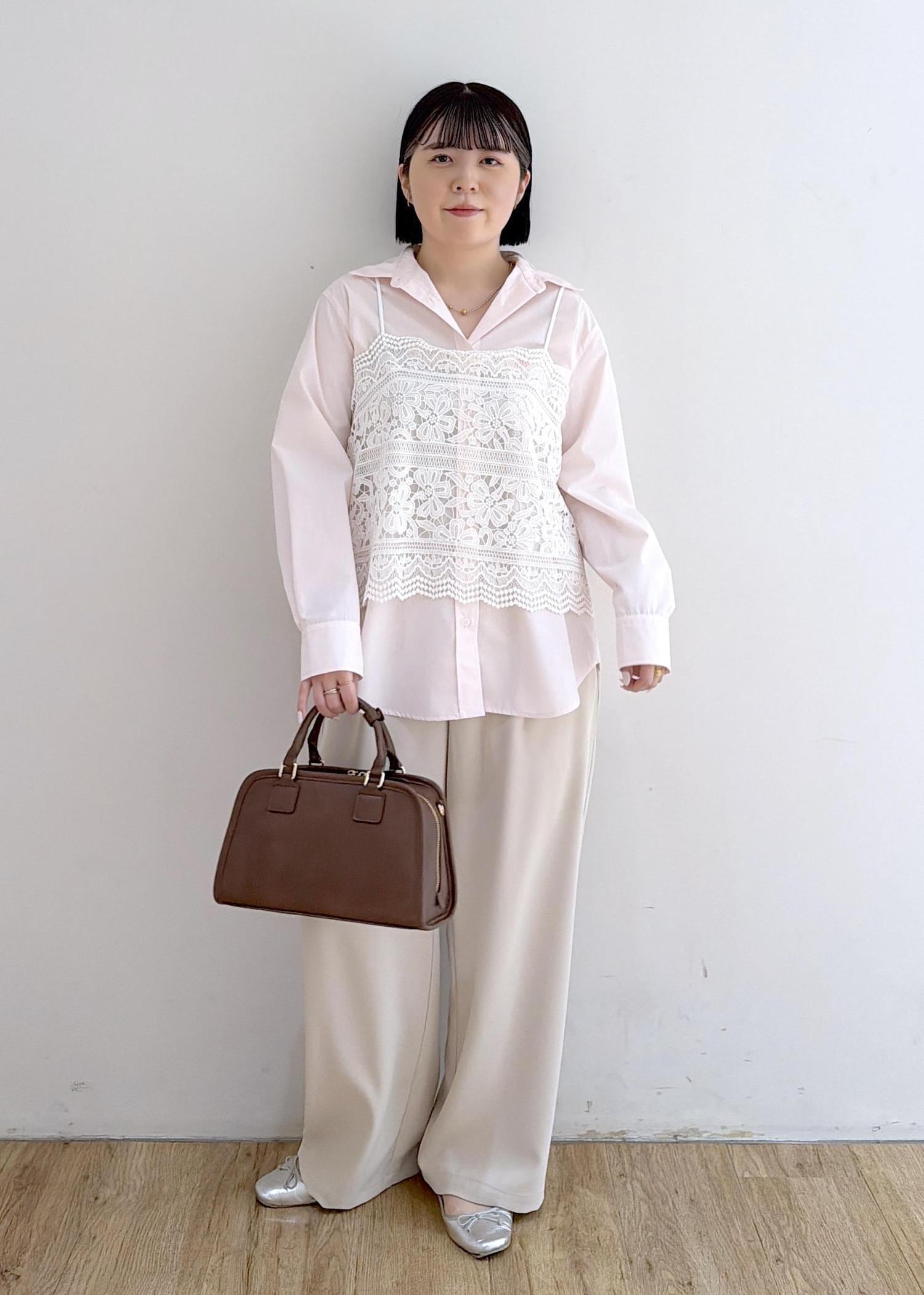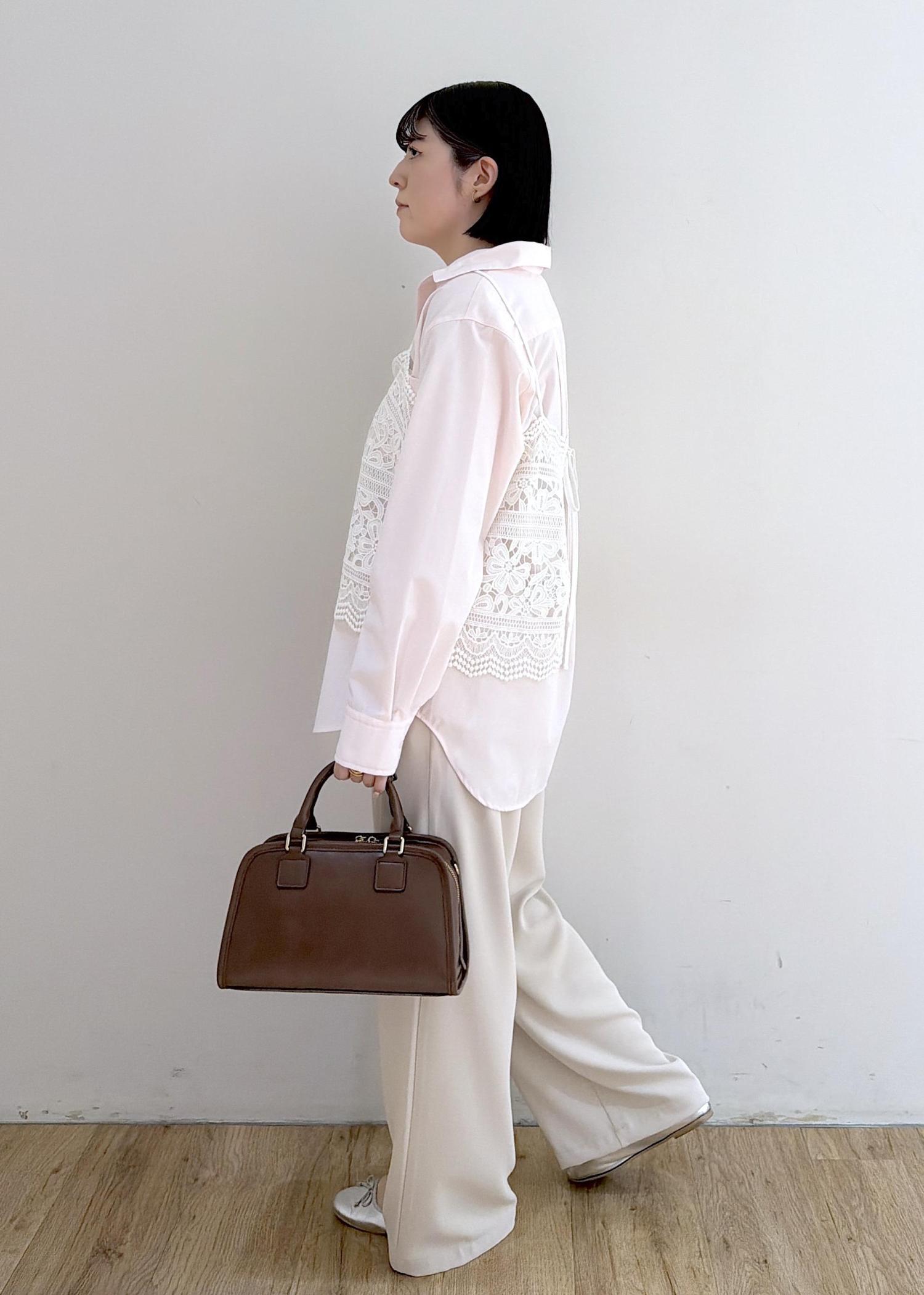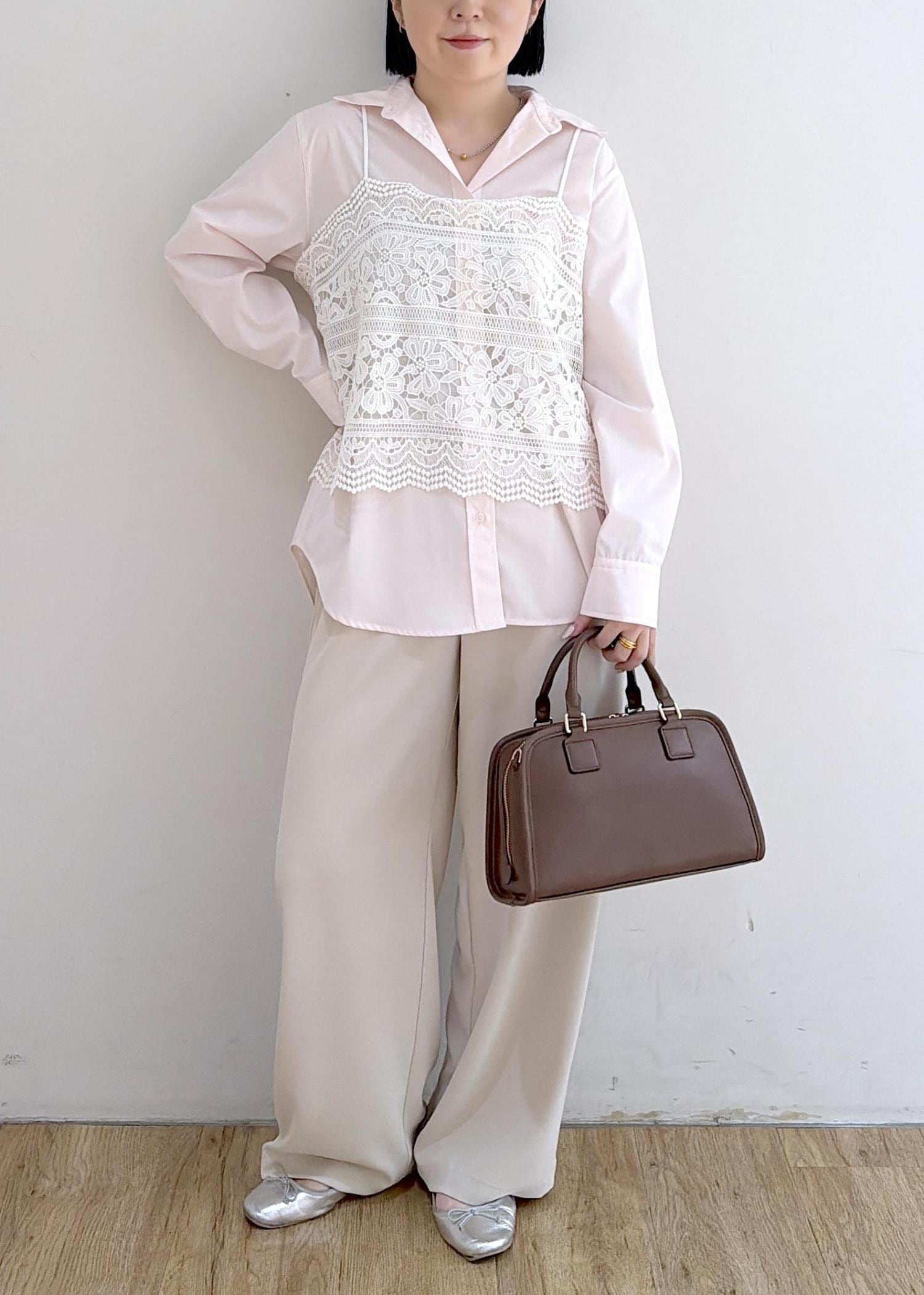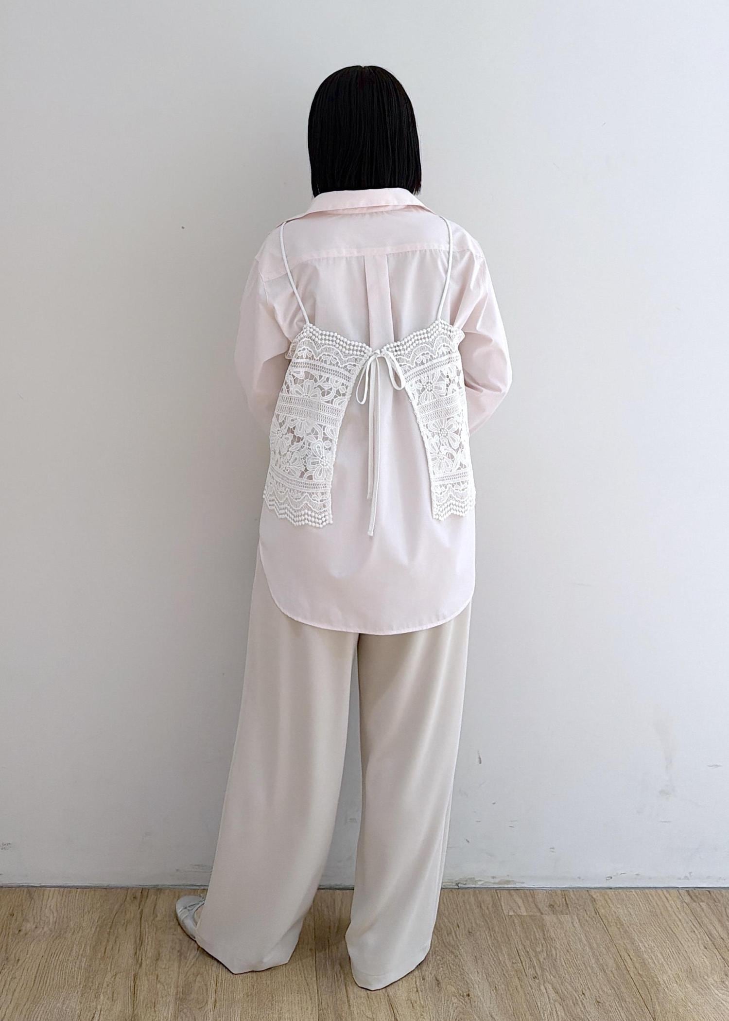 シャツ × レースビスチェ