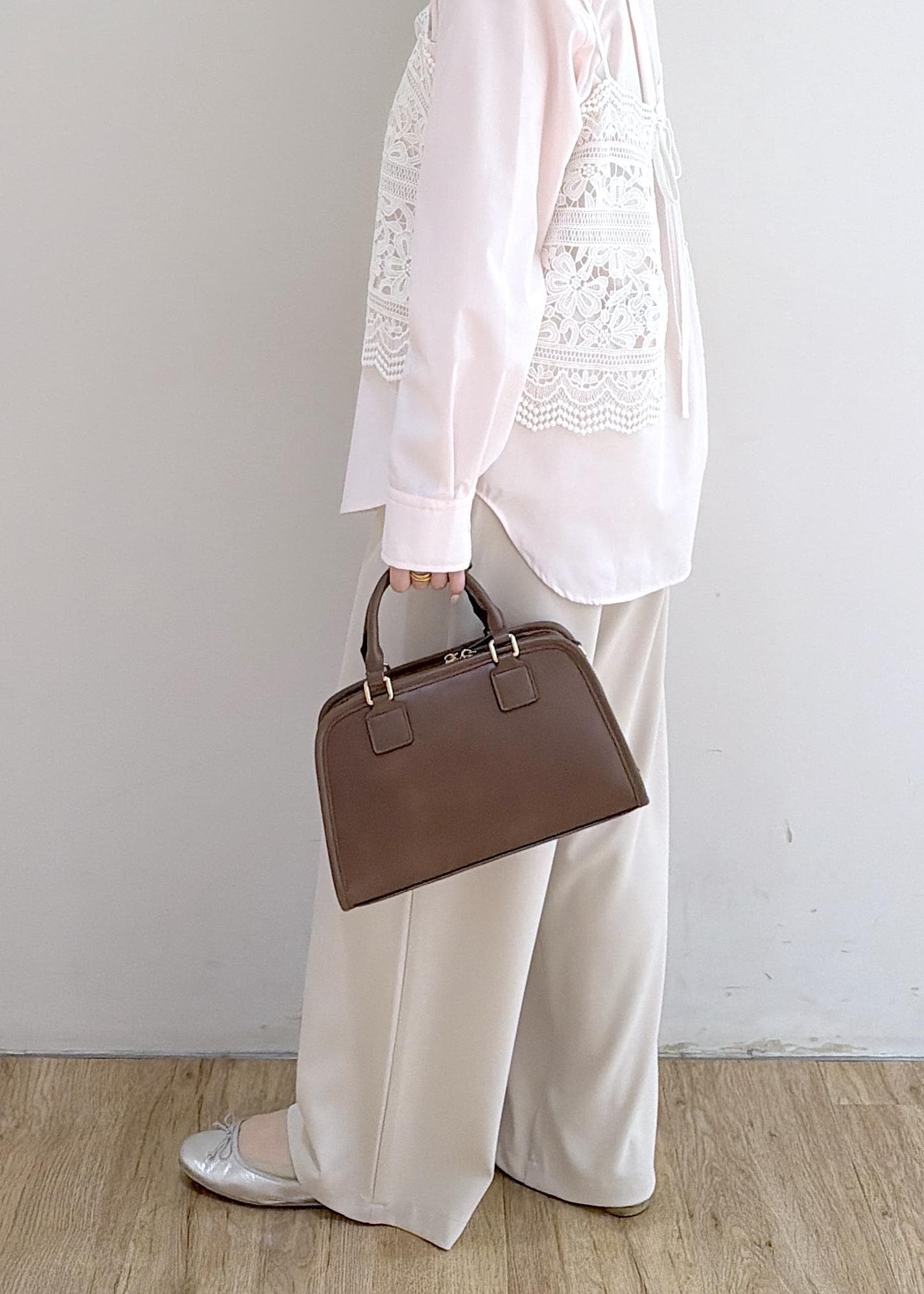ブラウンのバックを差し色にしています◎