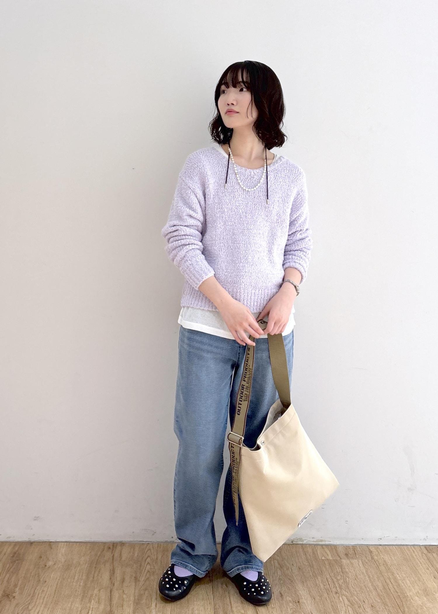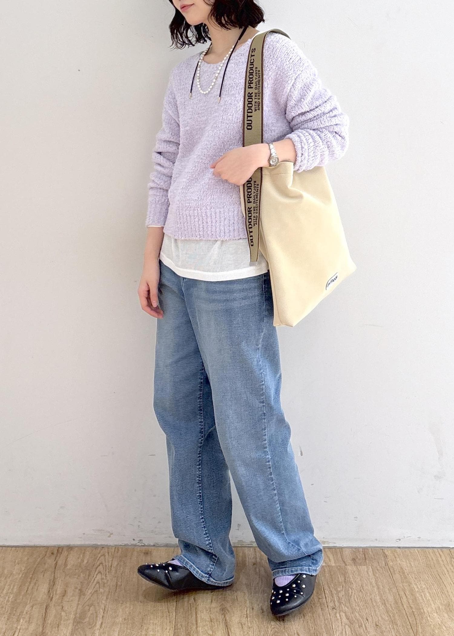・パールがコーディネートに上品さプラス