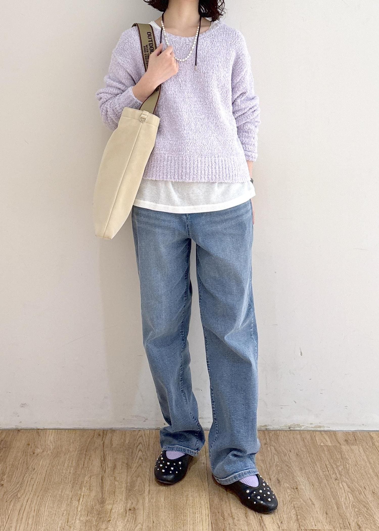 ROPÉ PICNICフリンジヤーンラメニットラベンダー / F¥5,489レビュー・163cmで着用