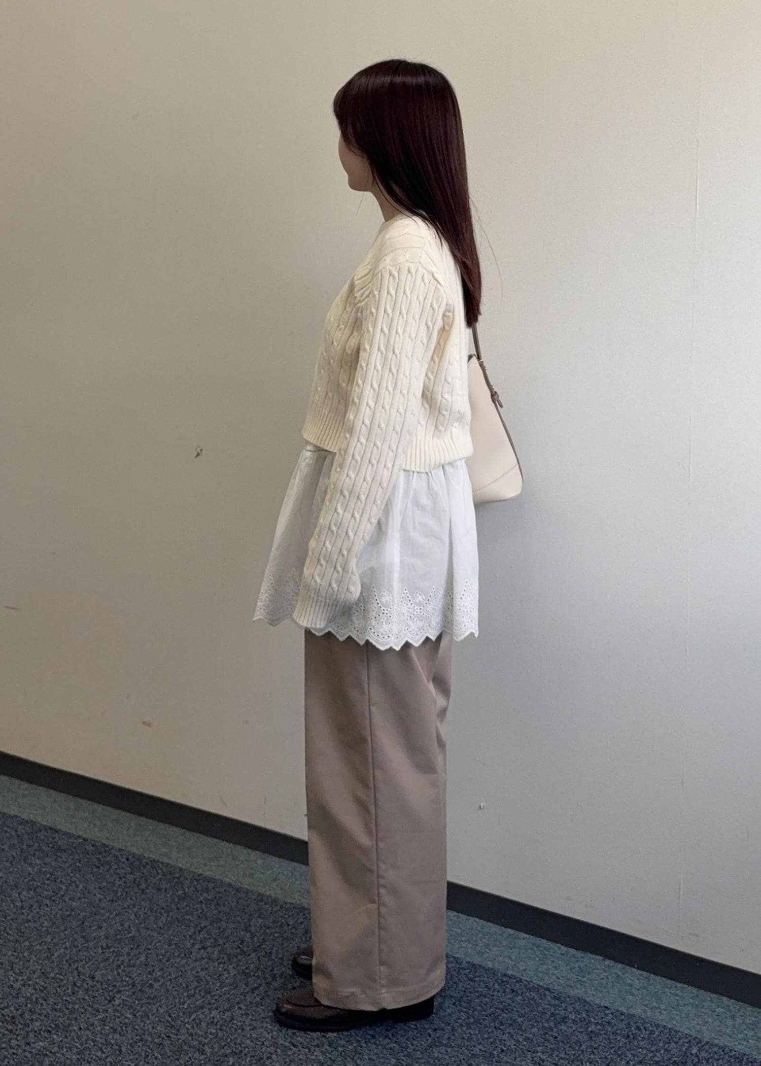 短めの丈感なので、一枚でもレイヤードでも楽しめます。 -