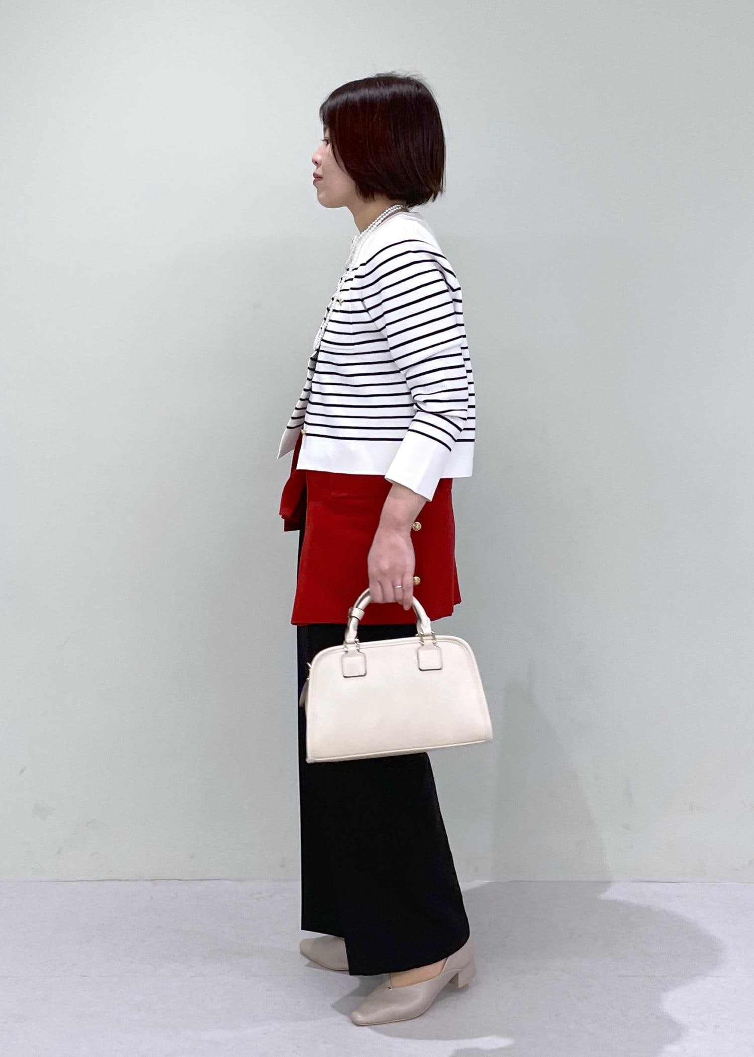 パキッとしたカラー合わせなので、小物はベージュ系のカラーを合わせて少し柔らかな印象に◎