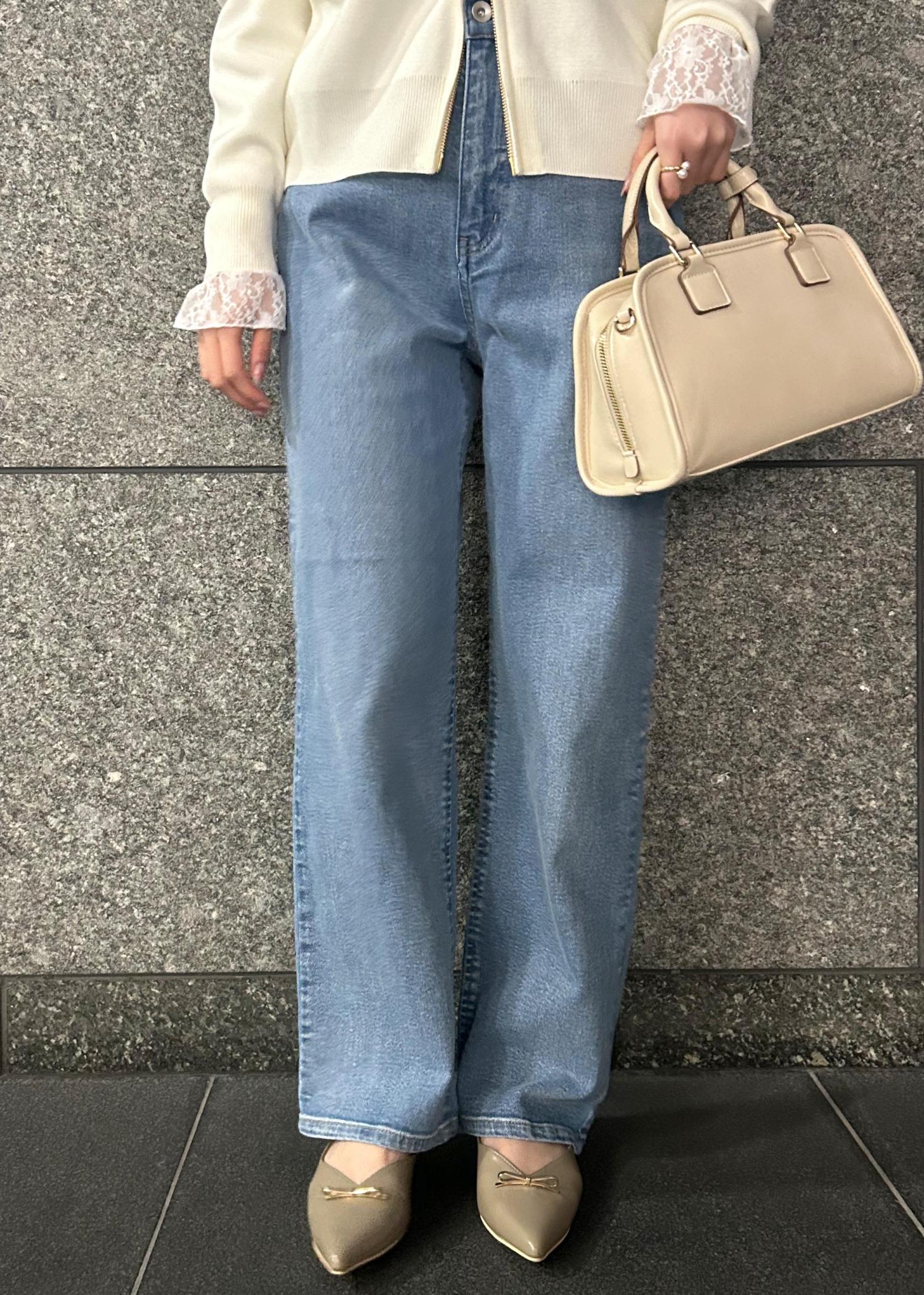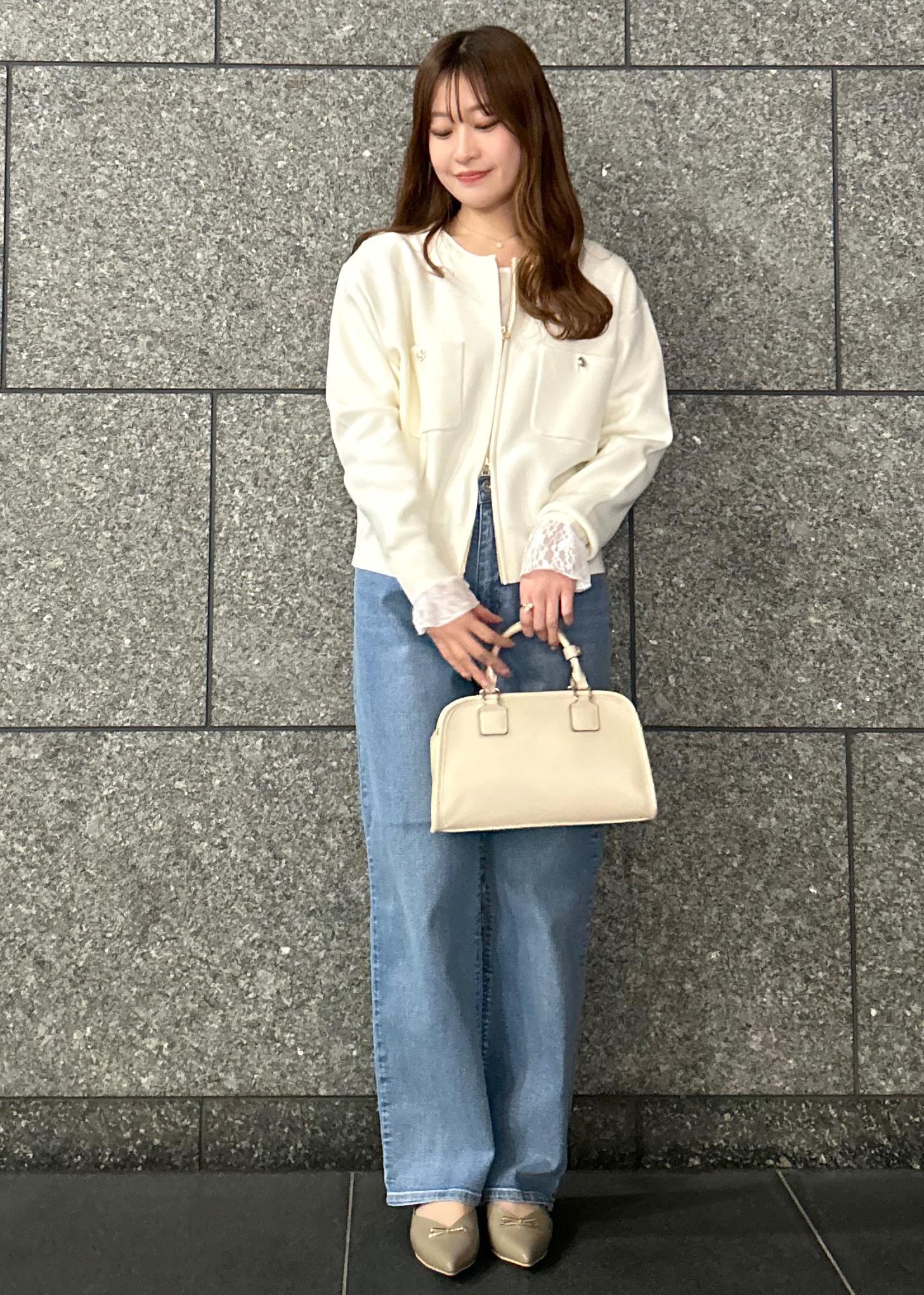 カジュアルになりすぎないように袖からフリルを出して可愛さをプラスしました!