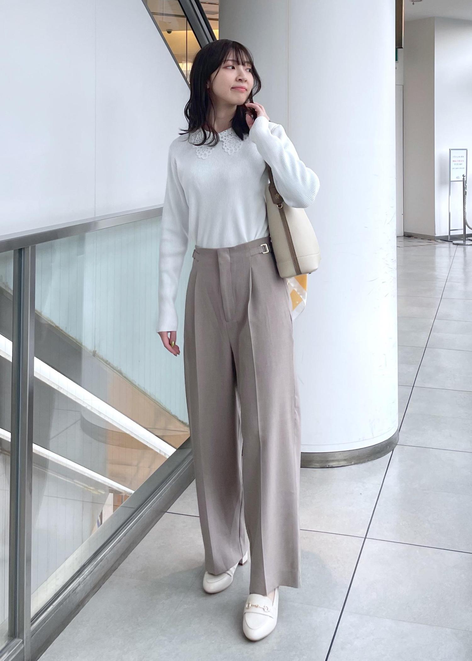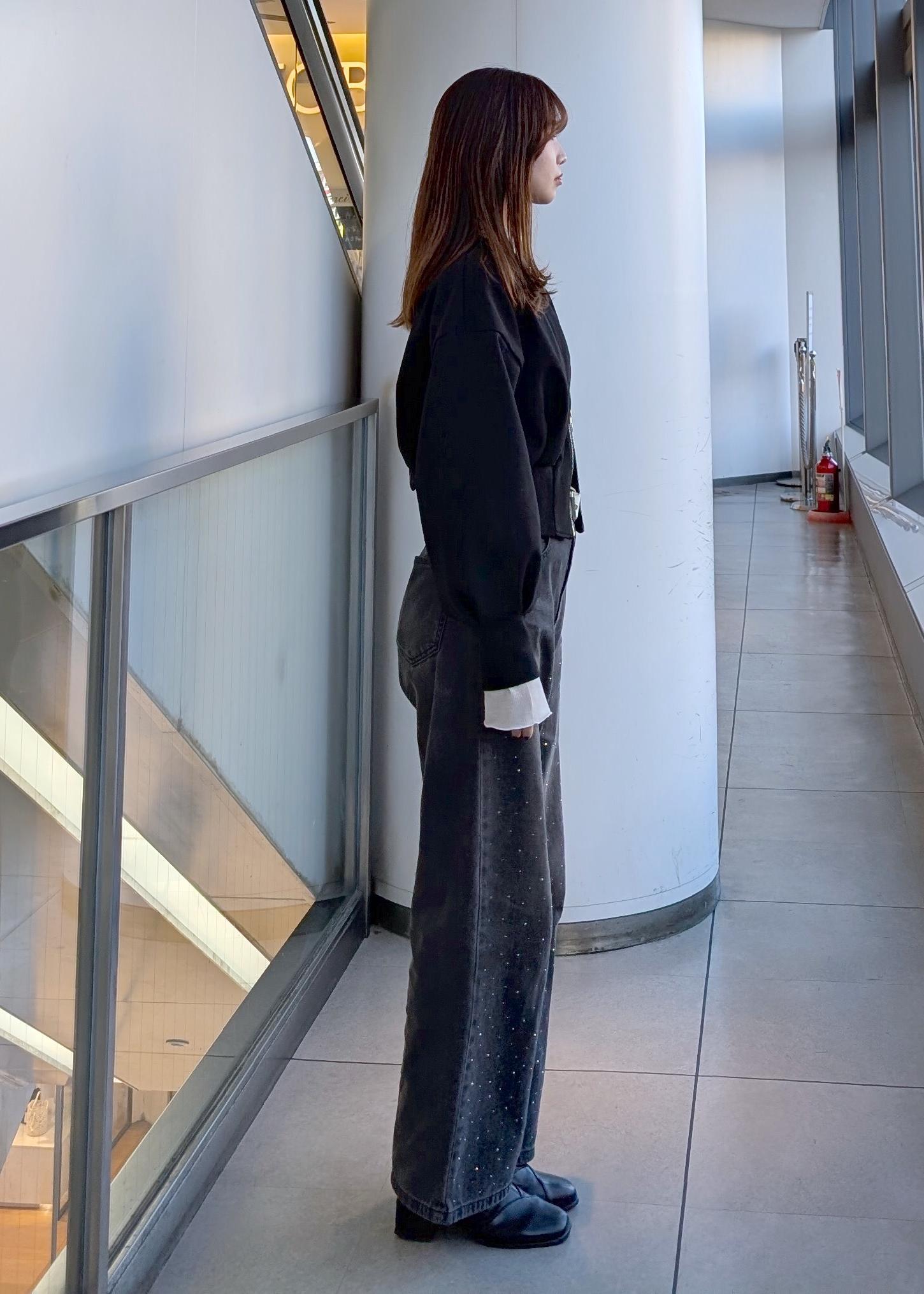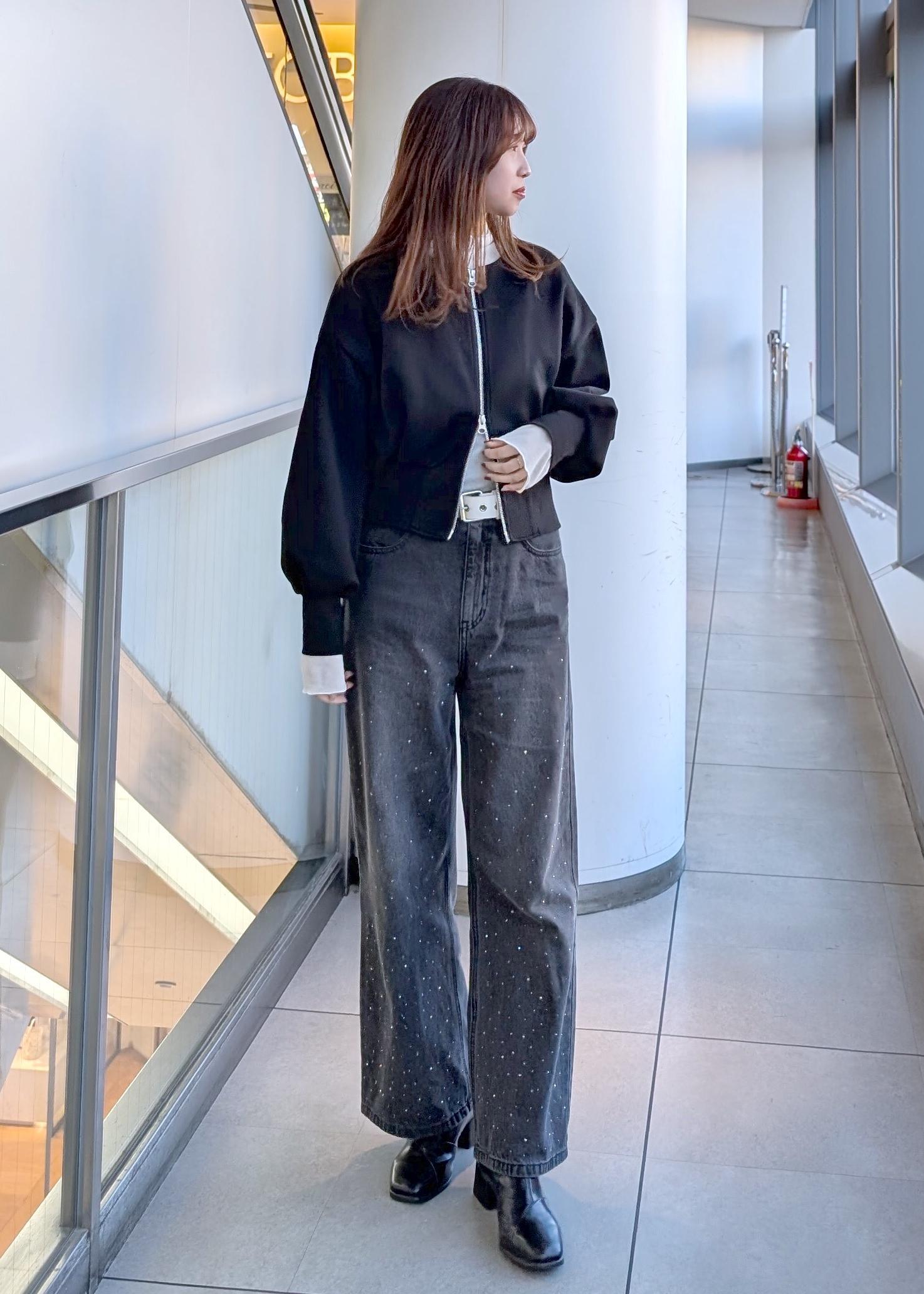脚のラインを取らないシルエットで、程よくゆとりがあります。ビジューが華やかで、履くだけでトレンド感を演出できるためシンプルなスタイルとの相性が良かったです。