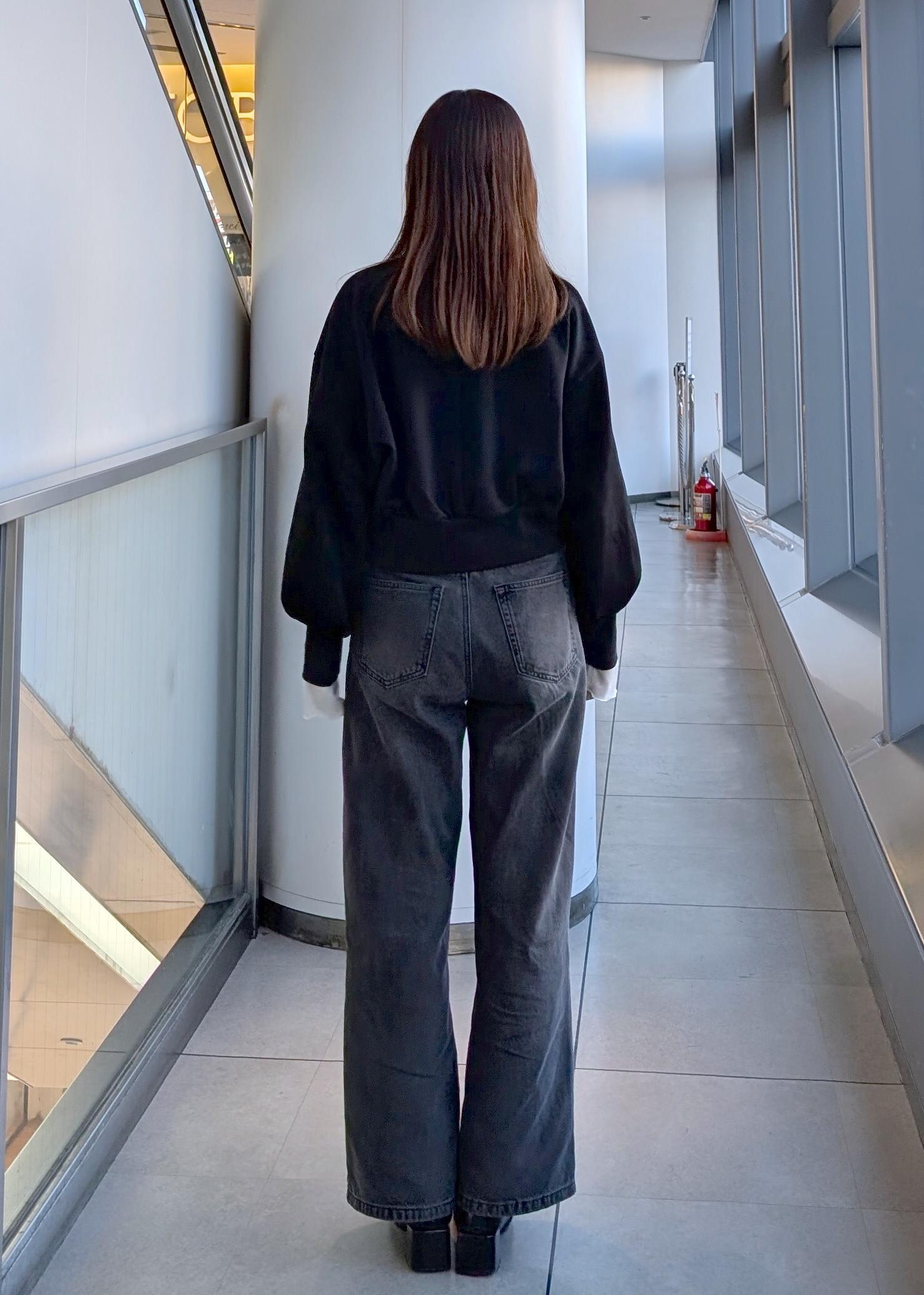 袖のボリューム感が可愛いダブルジップのカーディガン。しっかりめの生地で暖かい日にはブルゾンとしても使えます。着丈は腰位置くらいの短めでした。スッキリめに着用したかったため今回はSサイズを選びました。Mサイズの方が全体的にゆるっとした雰囲気です。
