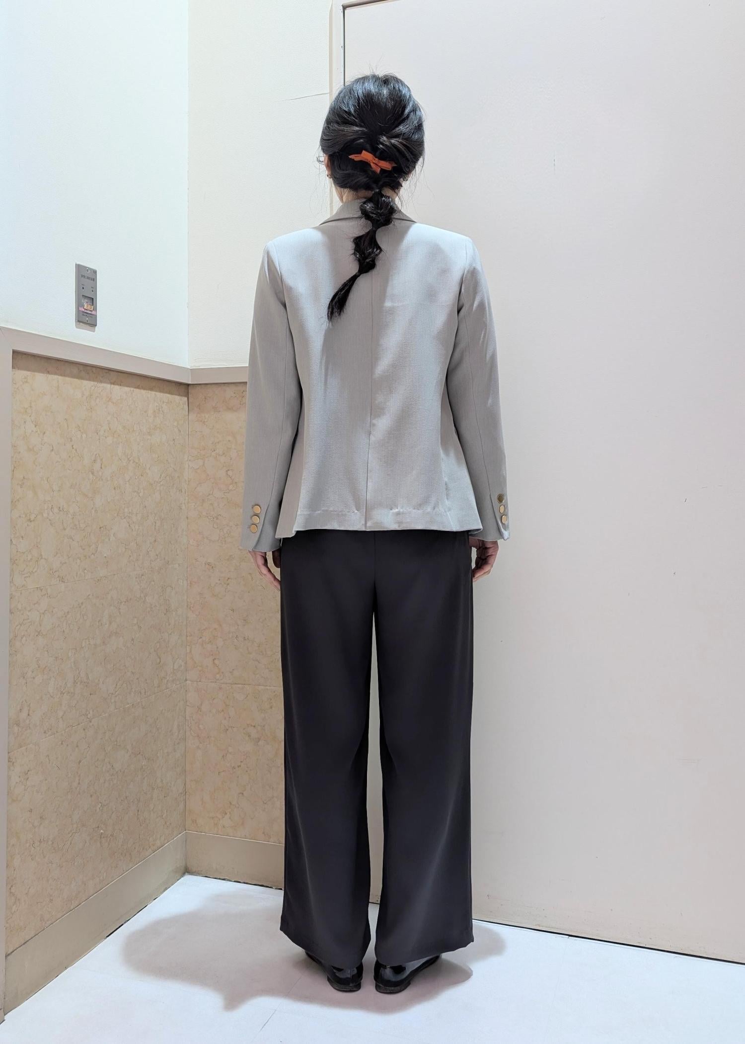フルレングスのボトムでしたら、Lサイズを合わせると今っぽいややゆるめのバランスになります。 -
