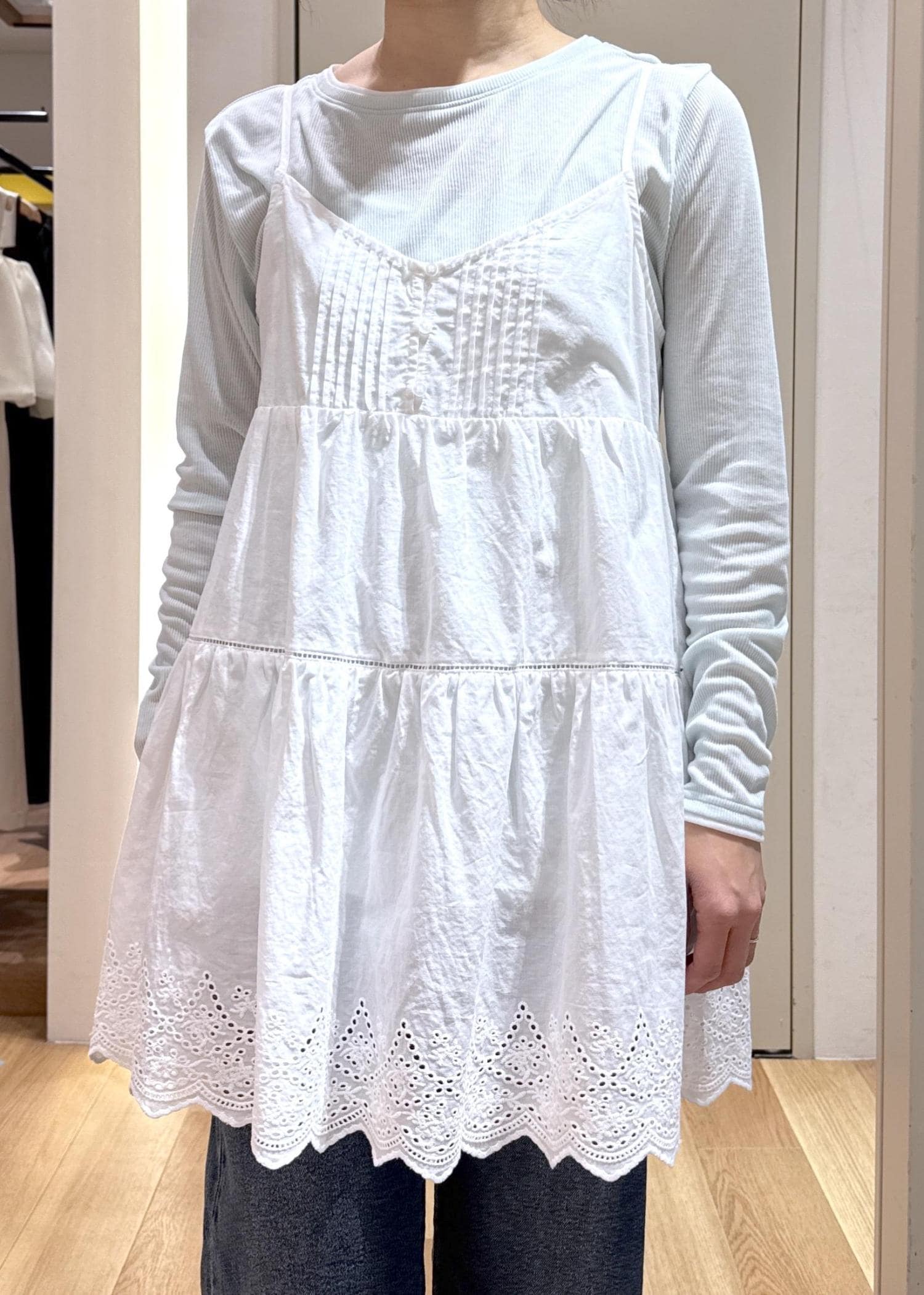 春先は薄手のロンTやシャツの上から重ねても可愛いので、コーディネートのアクセントになる万能アイテムです♪ -