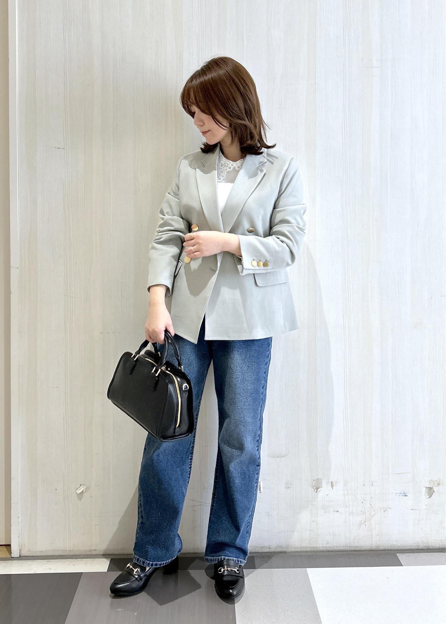 個人的にはテーラードカラー系のVネックジャケットとの合わせがお勧めです◎ -