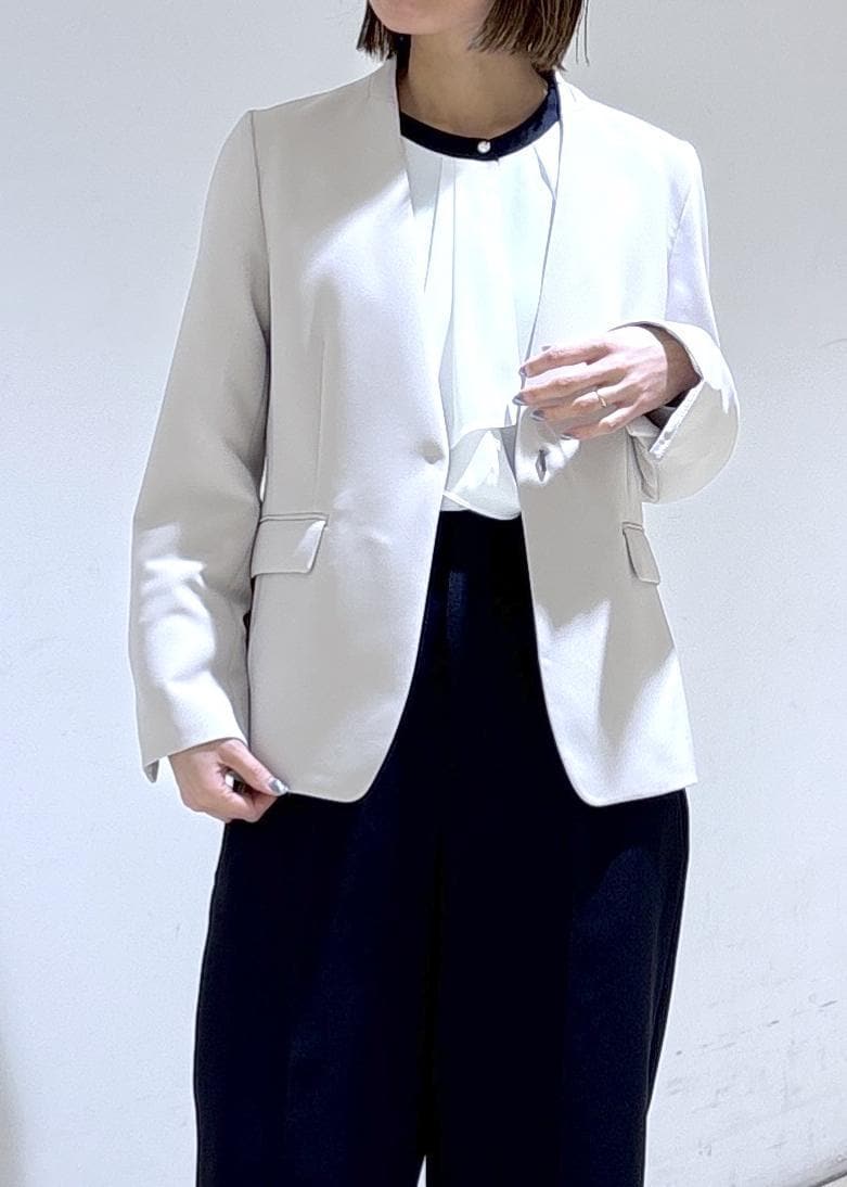 きちんと見えしてくれるノーカラージャケットに