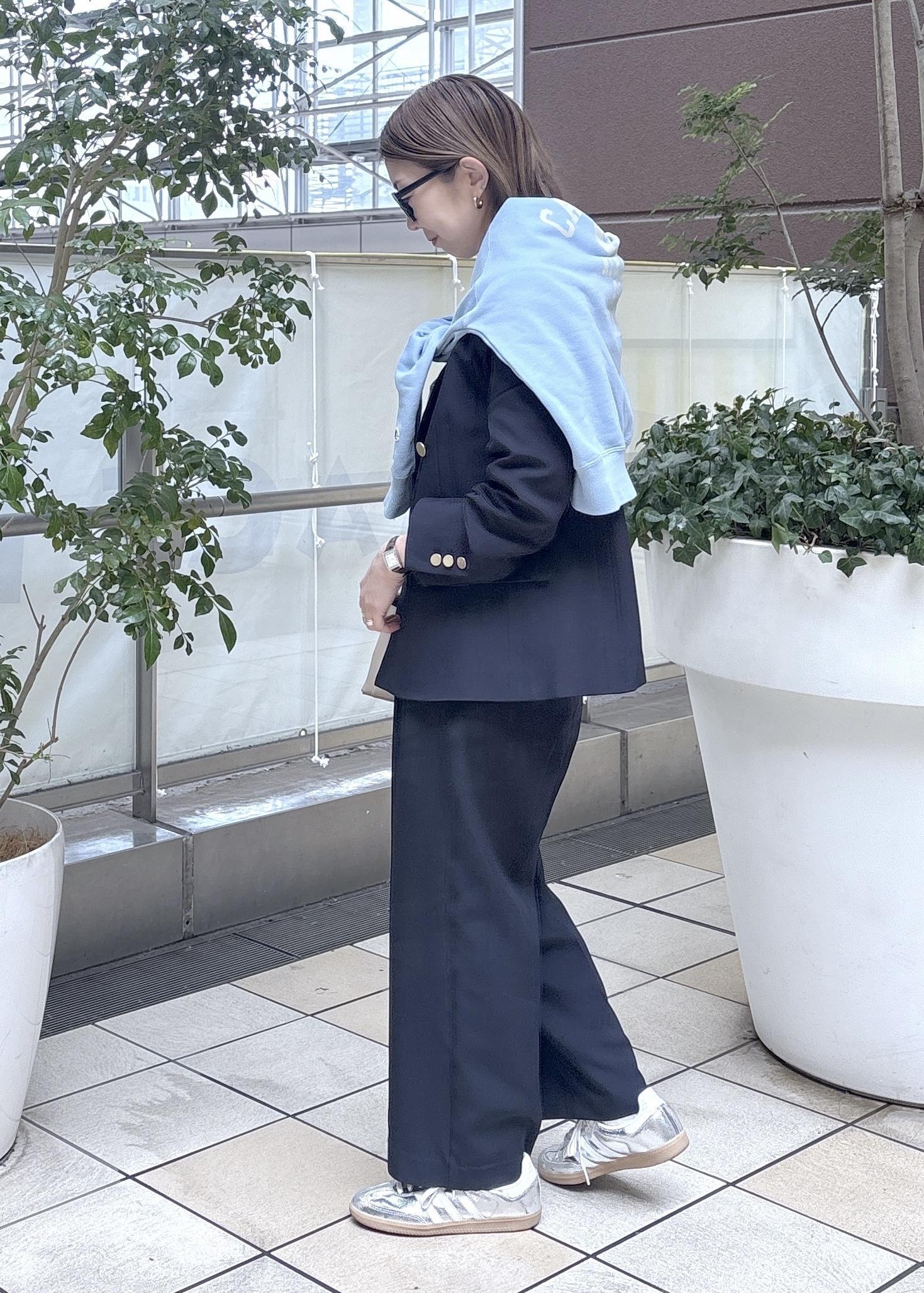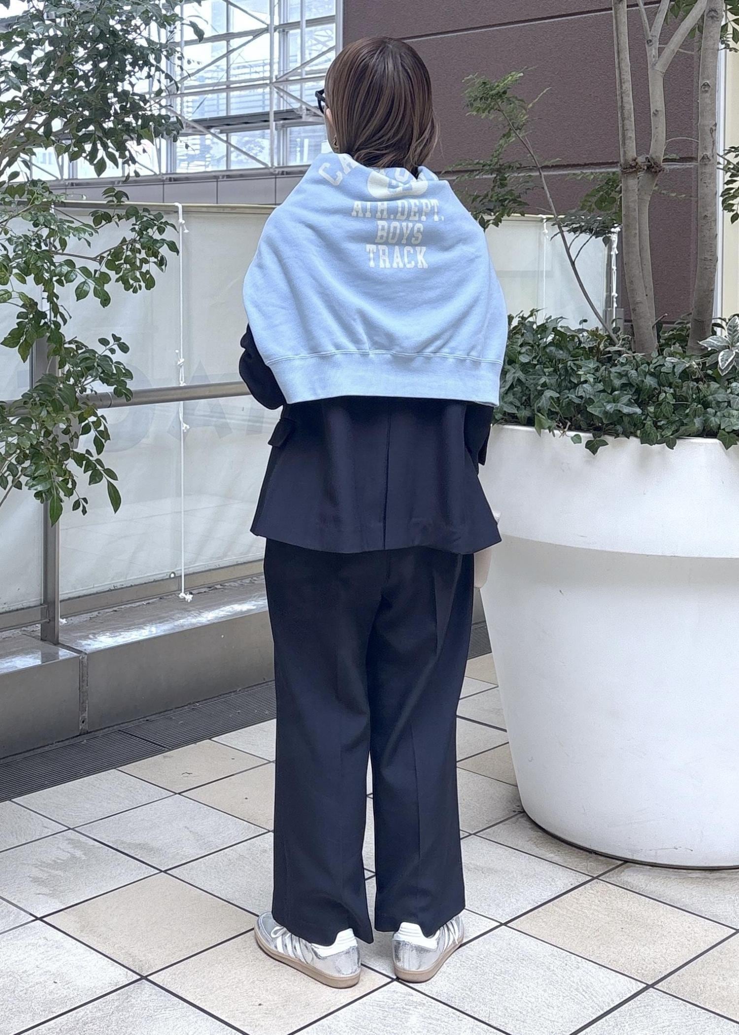 サックスブルーのスエットがポイントです。