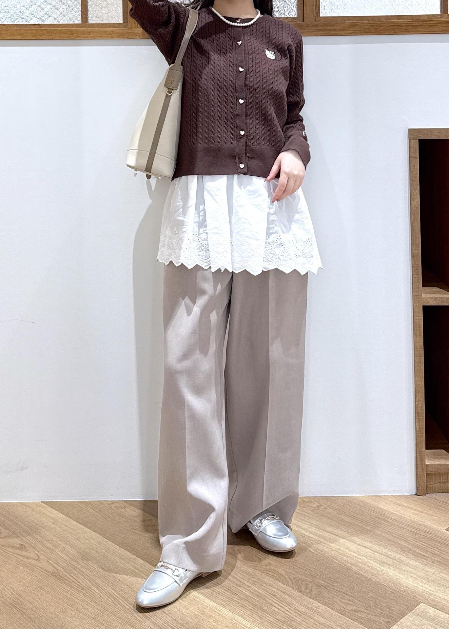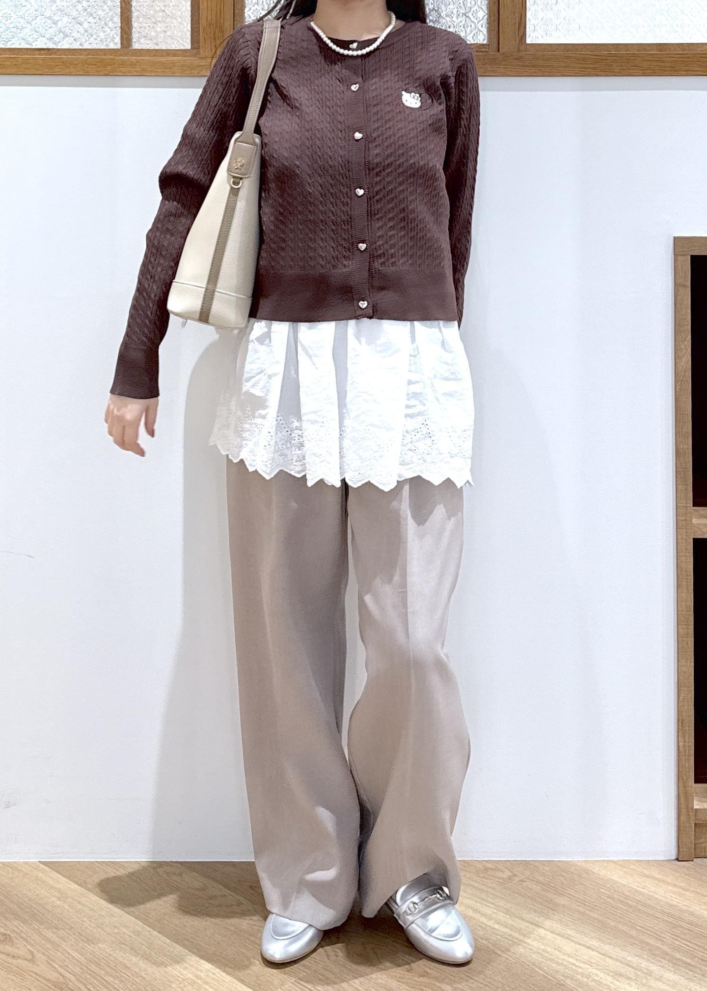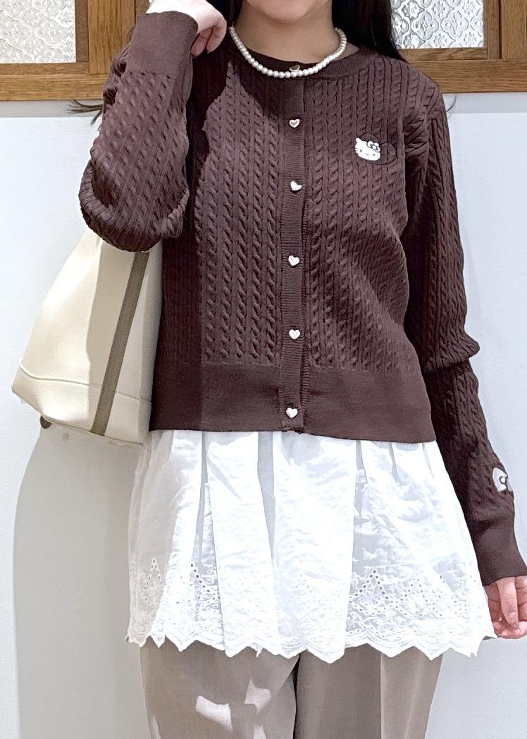 2BUY10%OFFROPÉ PICNIC【ROPE' PICNIC×ハローキティ】ワッペンケーブルニットカーディガンダークブラウン / F¥5,995レビュー左胸のハローキティ刺繍がワンポイントになって可愛らしい1枚。