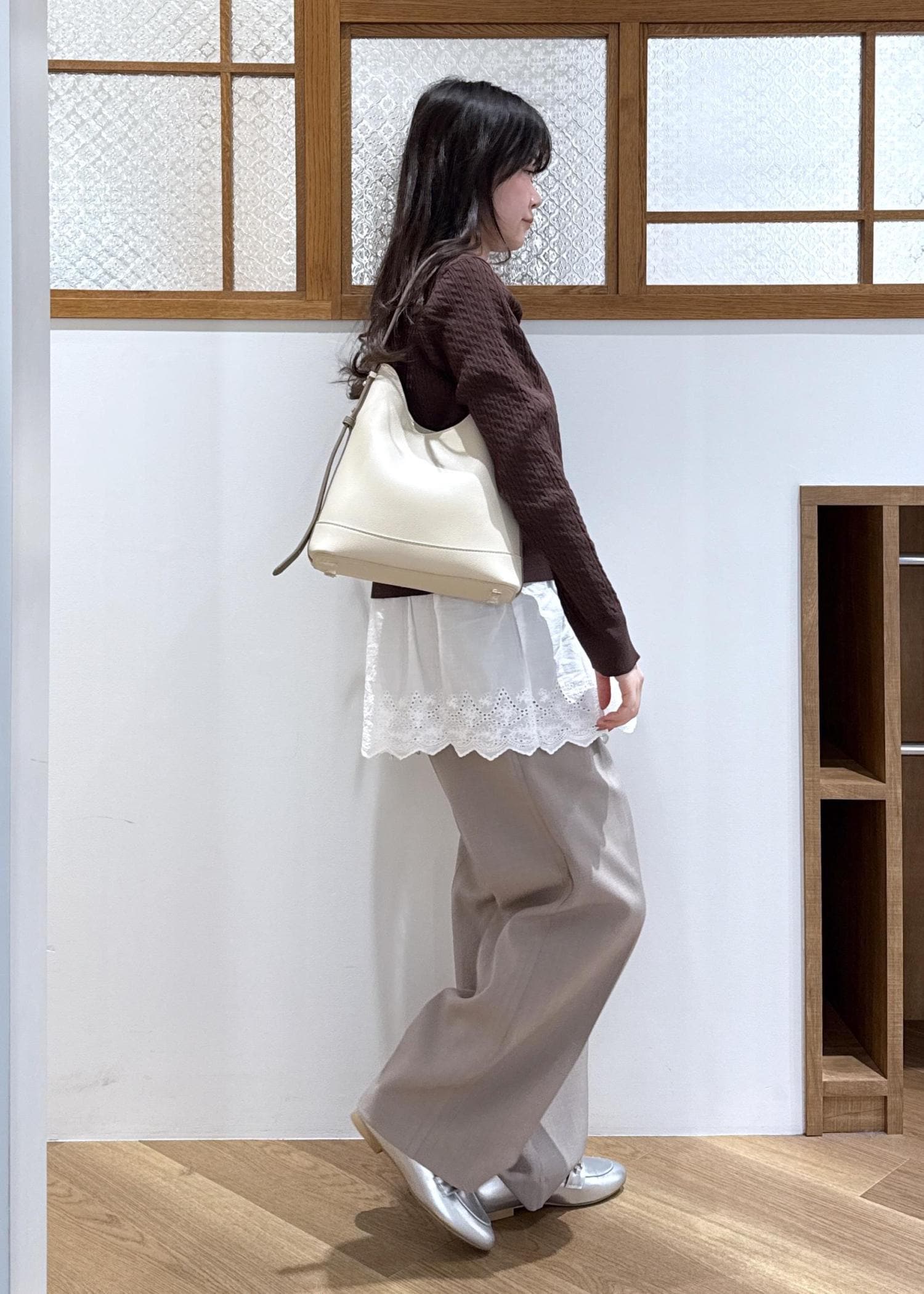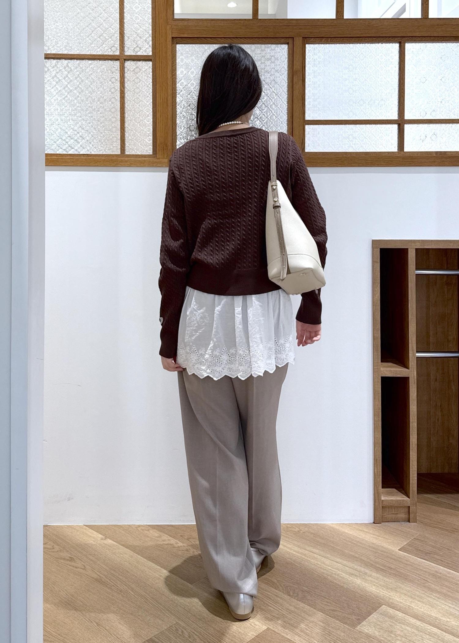インせずにきれいに着られる丈感で、スッキリとした印象に。