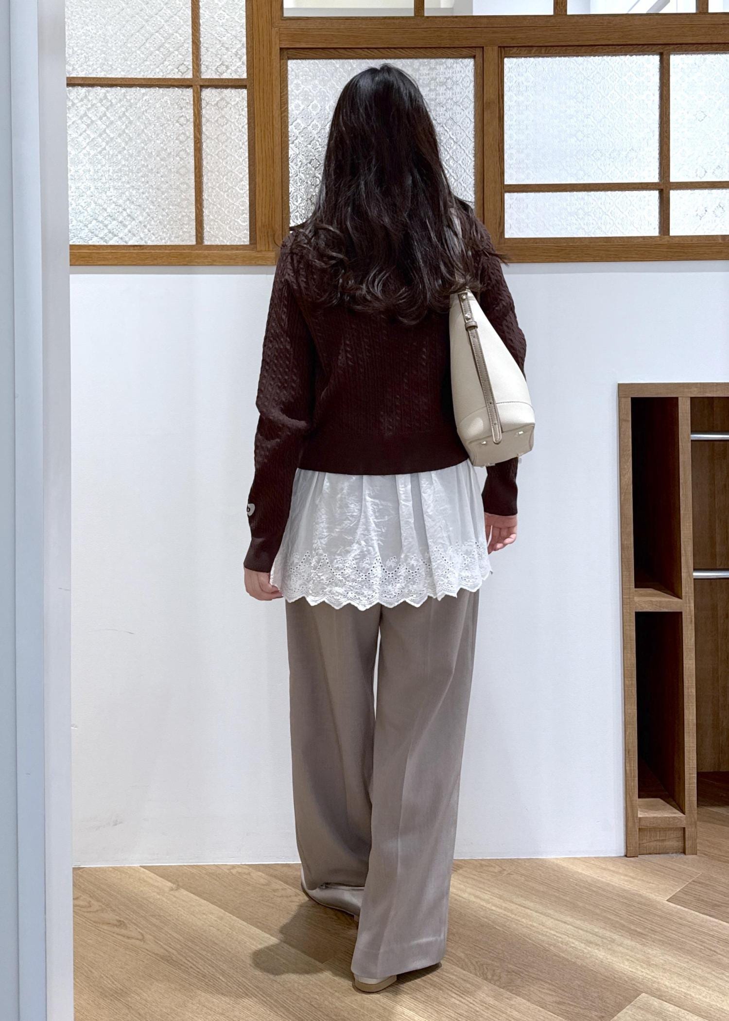 裾は独自のレースデザインで、甘くなりすぎないのがポイント。