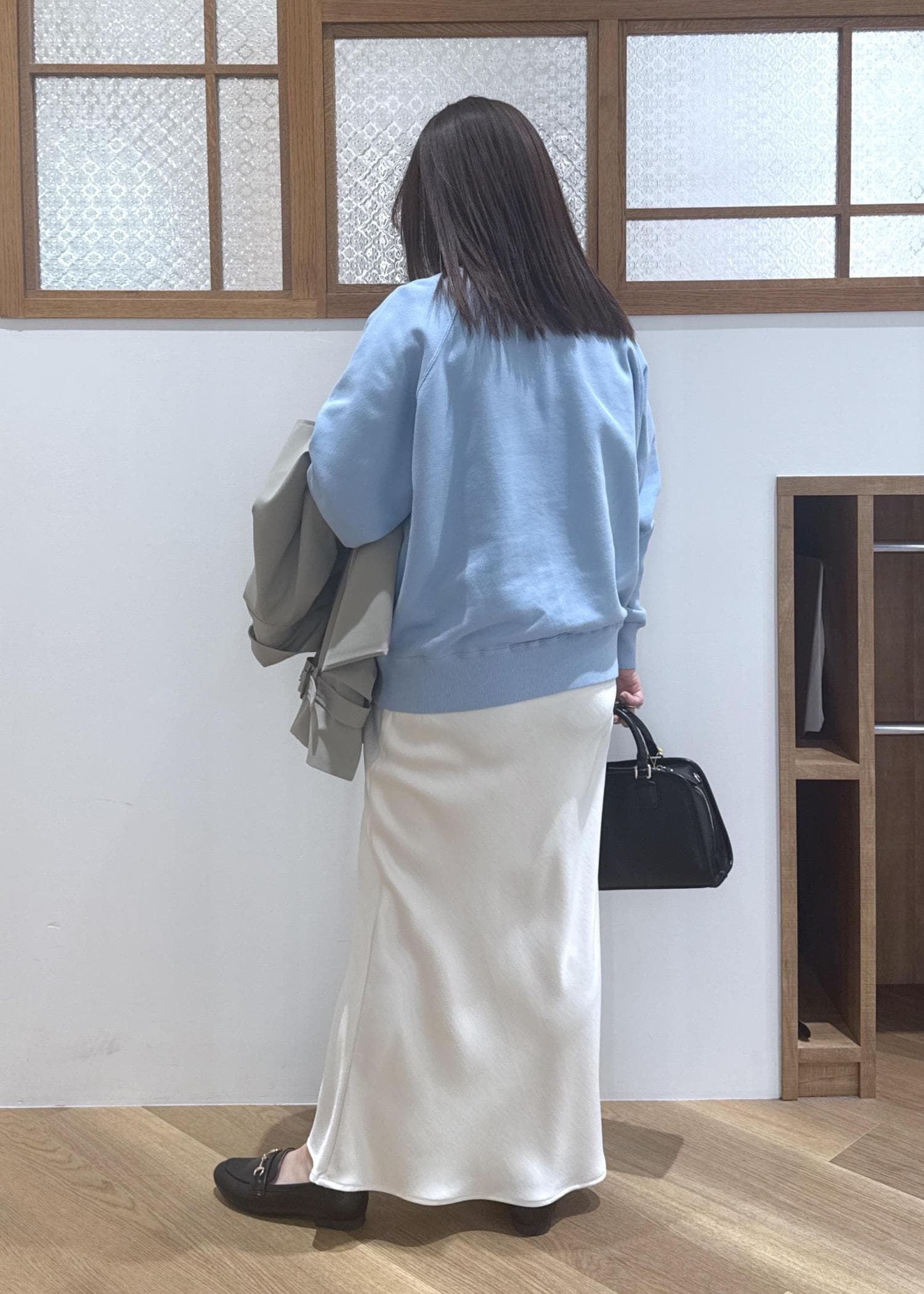 ROPÉ PICNIC細見えバイアスサテンスカート/イージーケアオフホワイト / F¥6,490レビューヴィンテージサテンのような品ある光沢感です。ウエストはゴムでストレスフリーです。ゆとりは有りながら落ち感あるシルエットでボトムがスッキリ華奢見えが叶います。裏地はなく白は透け感あるので、ペチコート着用がおすすめです。
