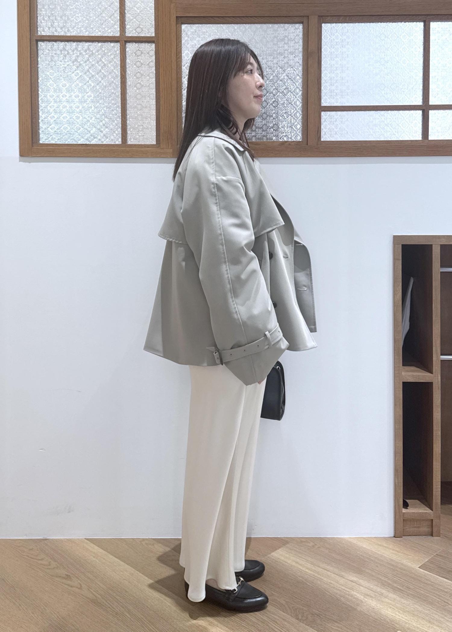 ROPÉ PICNICショート丈トレンチコート/撥水・花粉ガードカーキ / F¥13,200レビュー色味は緑みの弱いグレージュのようなカラーです。