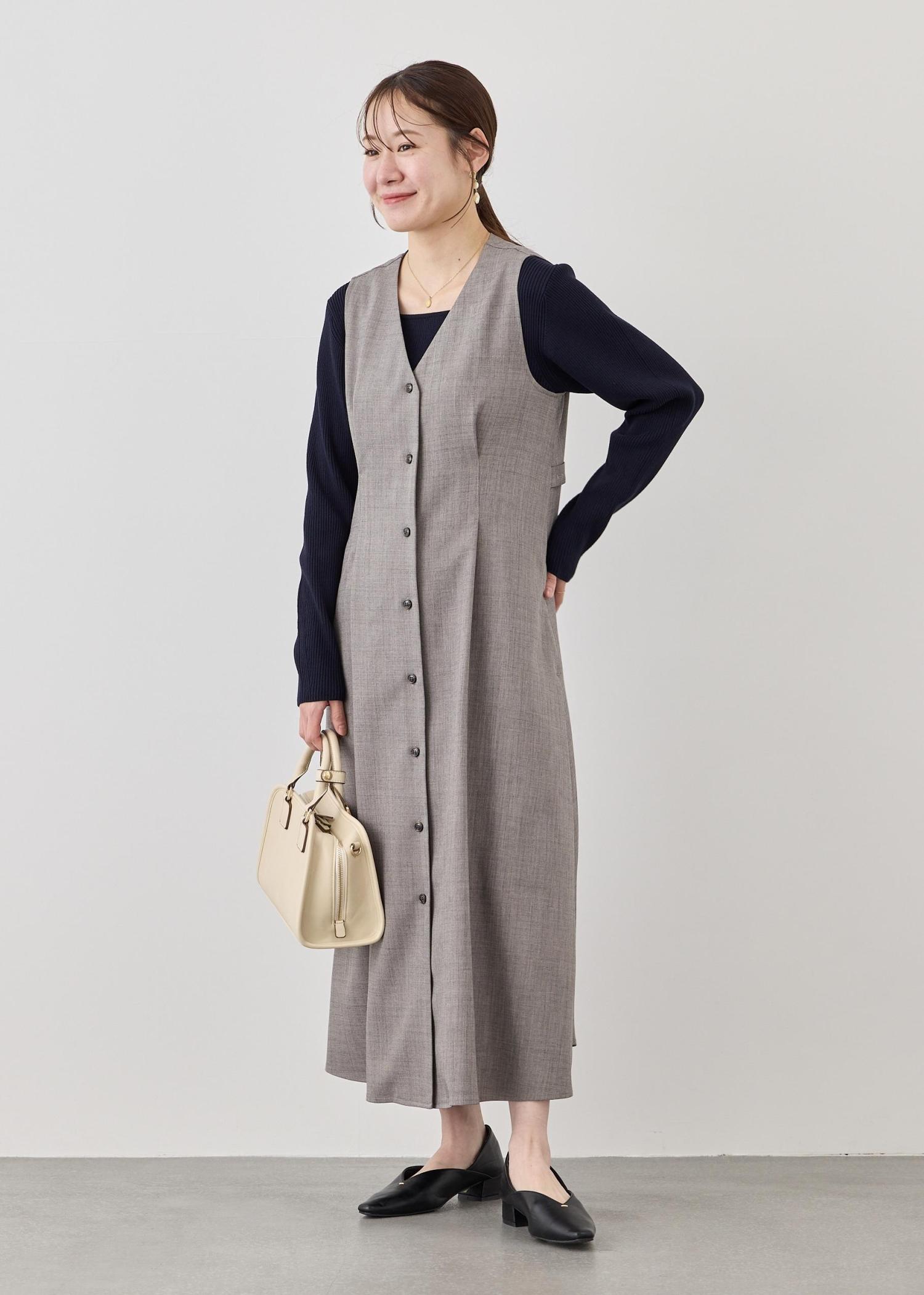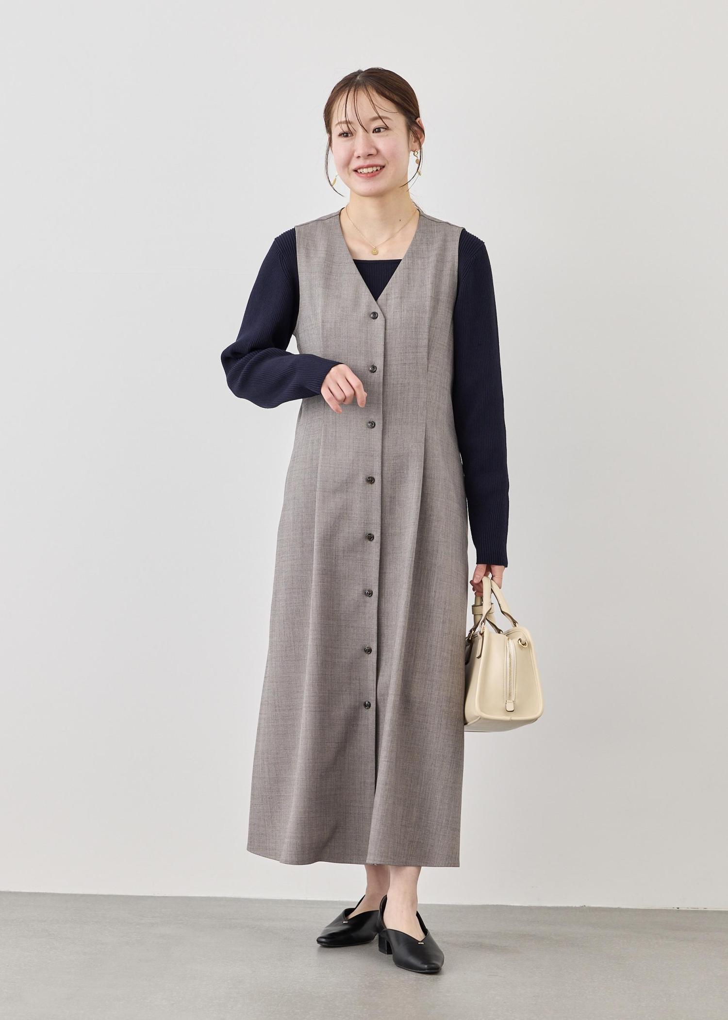2BUY10%OFFROPÉ PICNIC【低身長・小柄さんサイズ】ウエストタックジャンパースカートグレー系 / F¥7,997レビューさらっとした素材で涼しげな印象です。