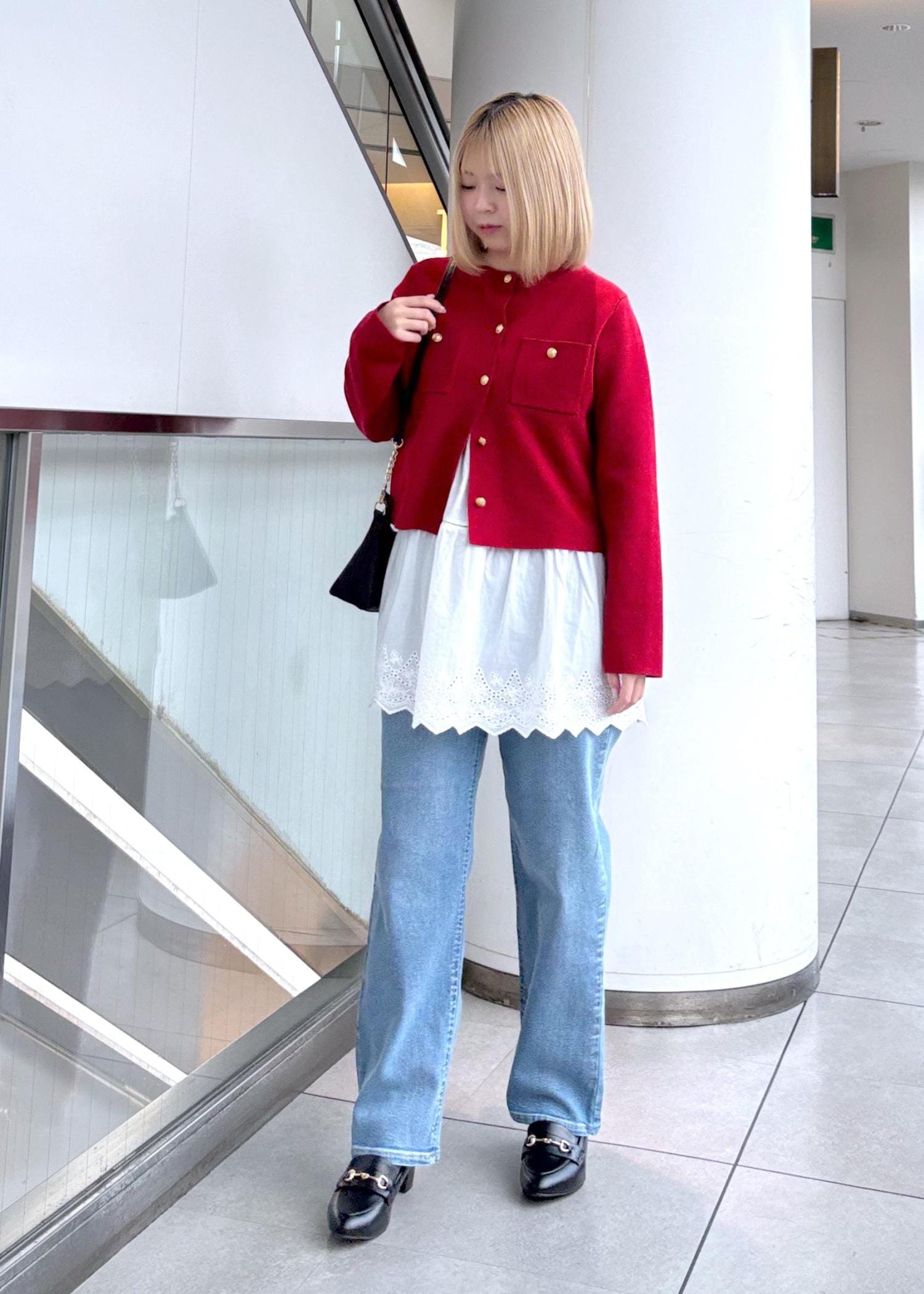 定番のミラノリブカーディガンを使用したレイヤードコーデにしてみました☺︎
