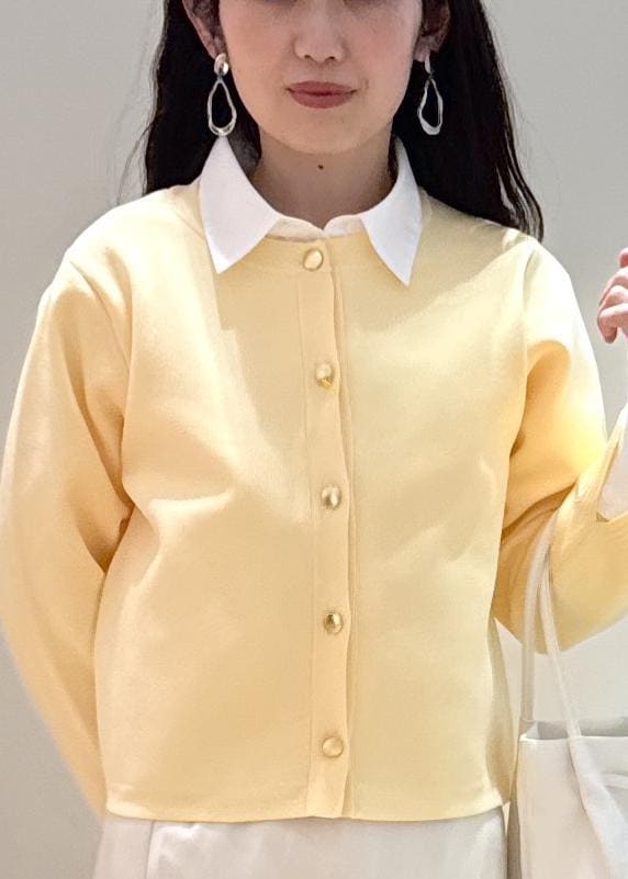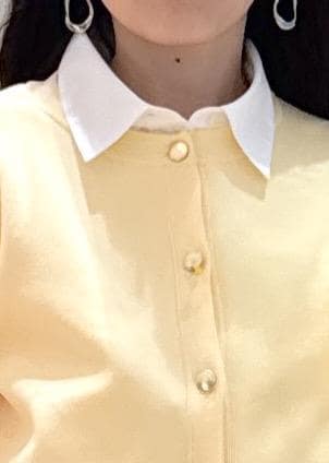 カーディガンは首元と袖のフリルを取り外しできますが、フリルを取ってシャツと重ねてみました。